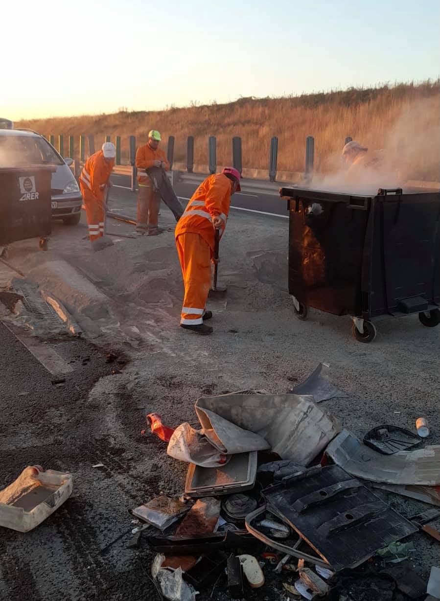 Accidentul s-a produs pe A1, la kilometrul 444, în zona localității Traian Vuia, pe sensul de mers spre Timișoara. Traficul, spun cei de la DRDP, va fi dat peste cap până în jurul prânzului, iar circulația se desfășoară doar pe banda de urgență.