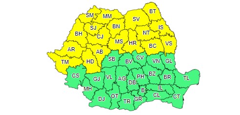 Codul Galben este valabil până în noaptea de vineri spre sâmbătă, în jurul orei 23. Avertizarea vizează mare parte din țară, printre care și județul Timiș.