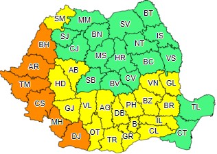 Tot miercuri, de la 11, în județul Timiș intră în vigoare și un cod galben de vreme rea. Avertizarea va fi valabilă până joi la ora 12 și vizează cea mai mare parte a țării.
