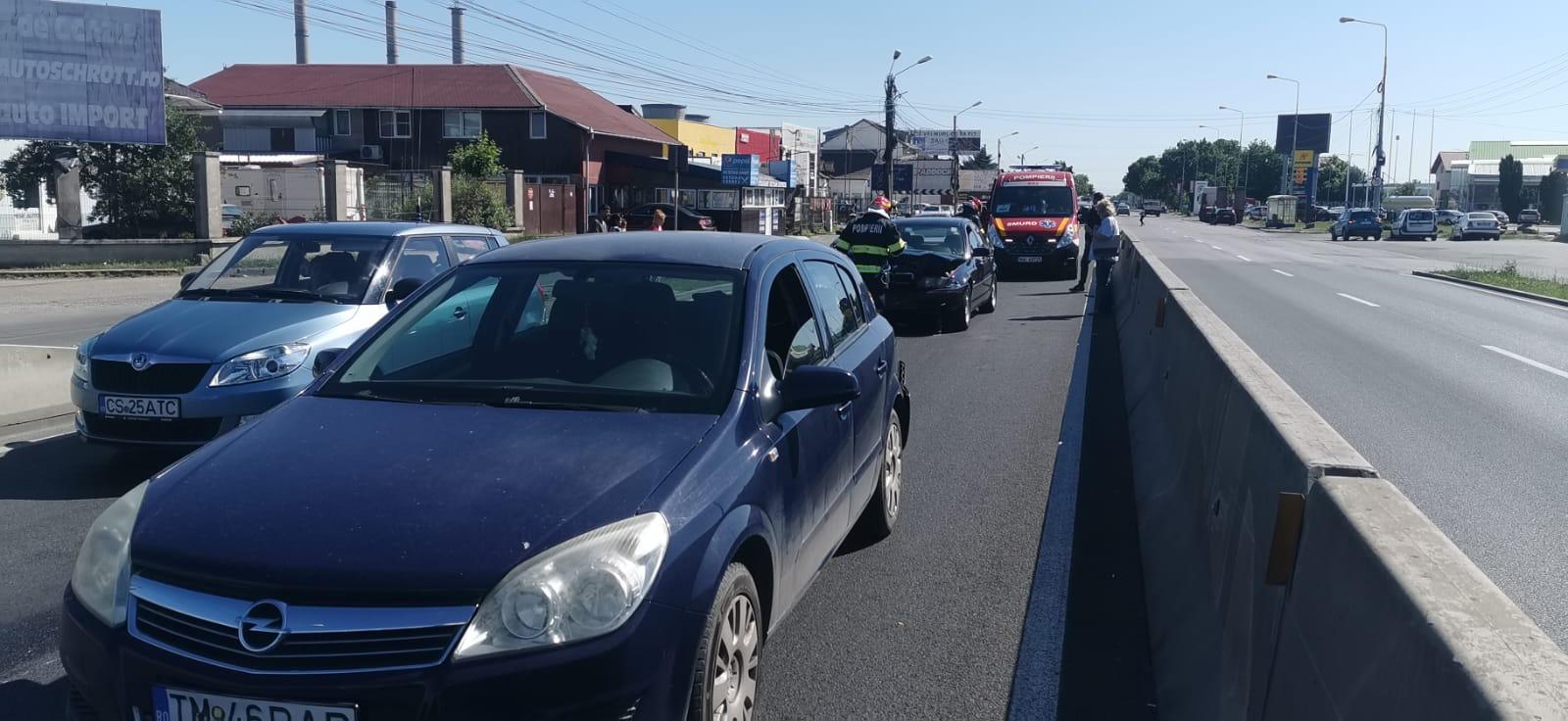 Accidentul, spun polițiștii, s-a produs din caua unei șoferițe în vârstă de 29 de ani. Femeia circula pe Calea Șagului, spre oraș, și nu a păstrat distanța regulamentară în mers. A lovit din spate o mașină condusă regulamentar de un bărbat în vârstă de 74 de ani.