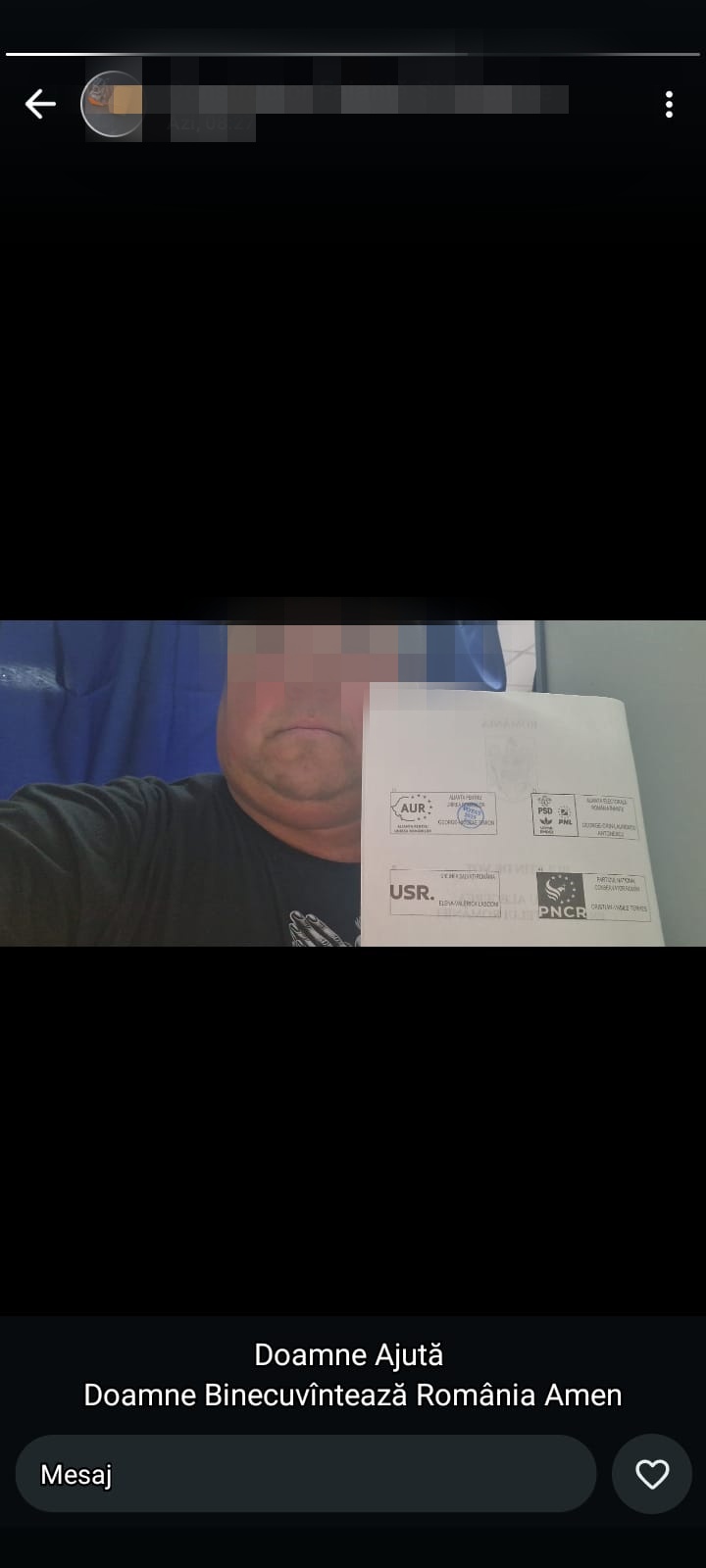 În plus, un cititor Tion ne-a transmis că la Jimbolia, un bărbat și-a publicat poza cu buletinul de vot la starea aplicației WhatsApp.