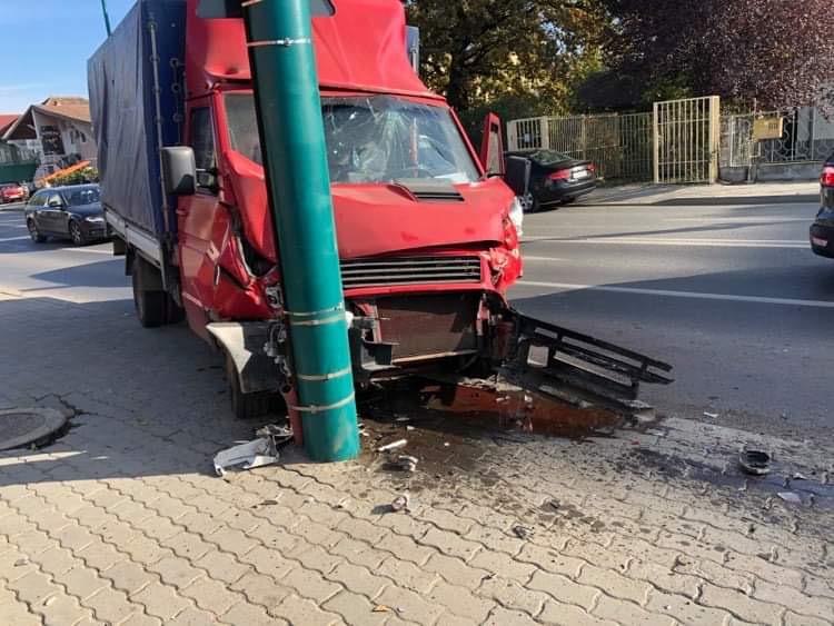 Tânărul de 31 de ani a tras de volan, a lovit autoturismul oprit, iar apoi s-a înfipt cu autoutilitara într-un stâlp de pe marginea drumului fiind la un pas să lovească femeia și copilul.