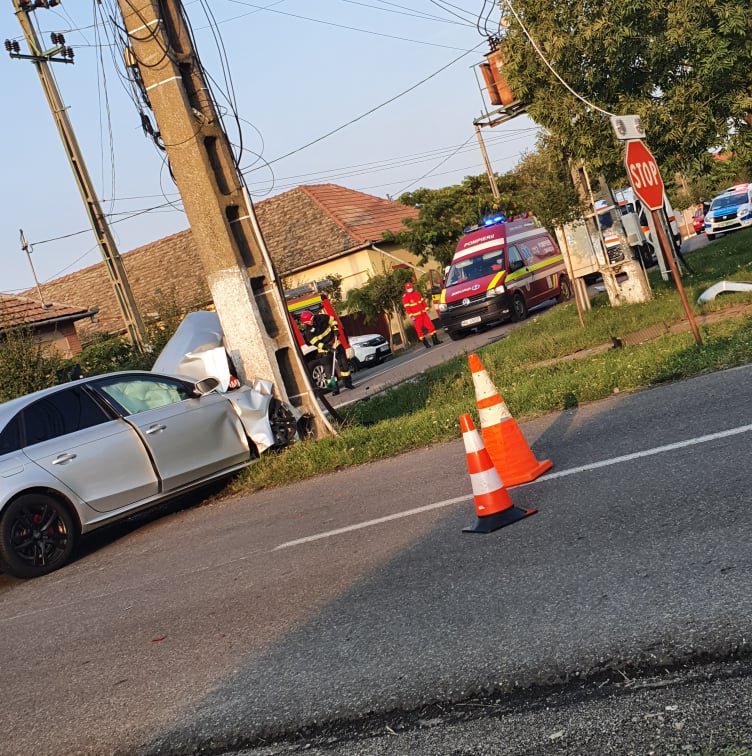 Incidentul s-a produs la intersecția străzilor 9 Mai și Mărășești, conform primelor informații. Două autoturisme s-au ciocnit, iar unul dintre ele a ajuns în stâlp.