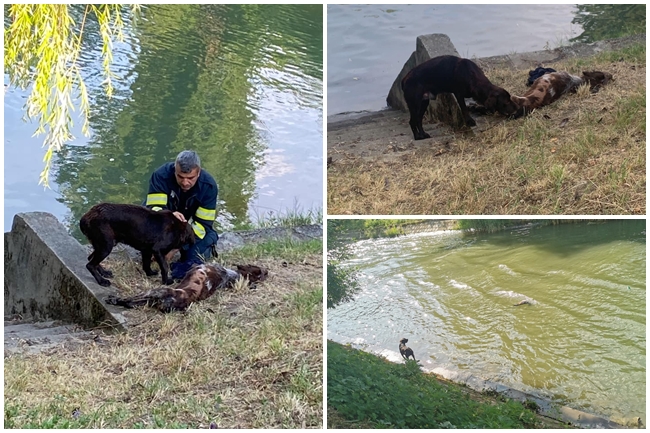 FOTO. Câine înecat în canalul Bega, la Timișoara. Un altul îl aștepta în zadar, plângând, pe mal