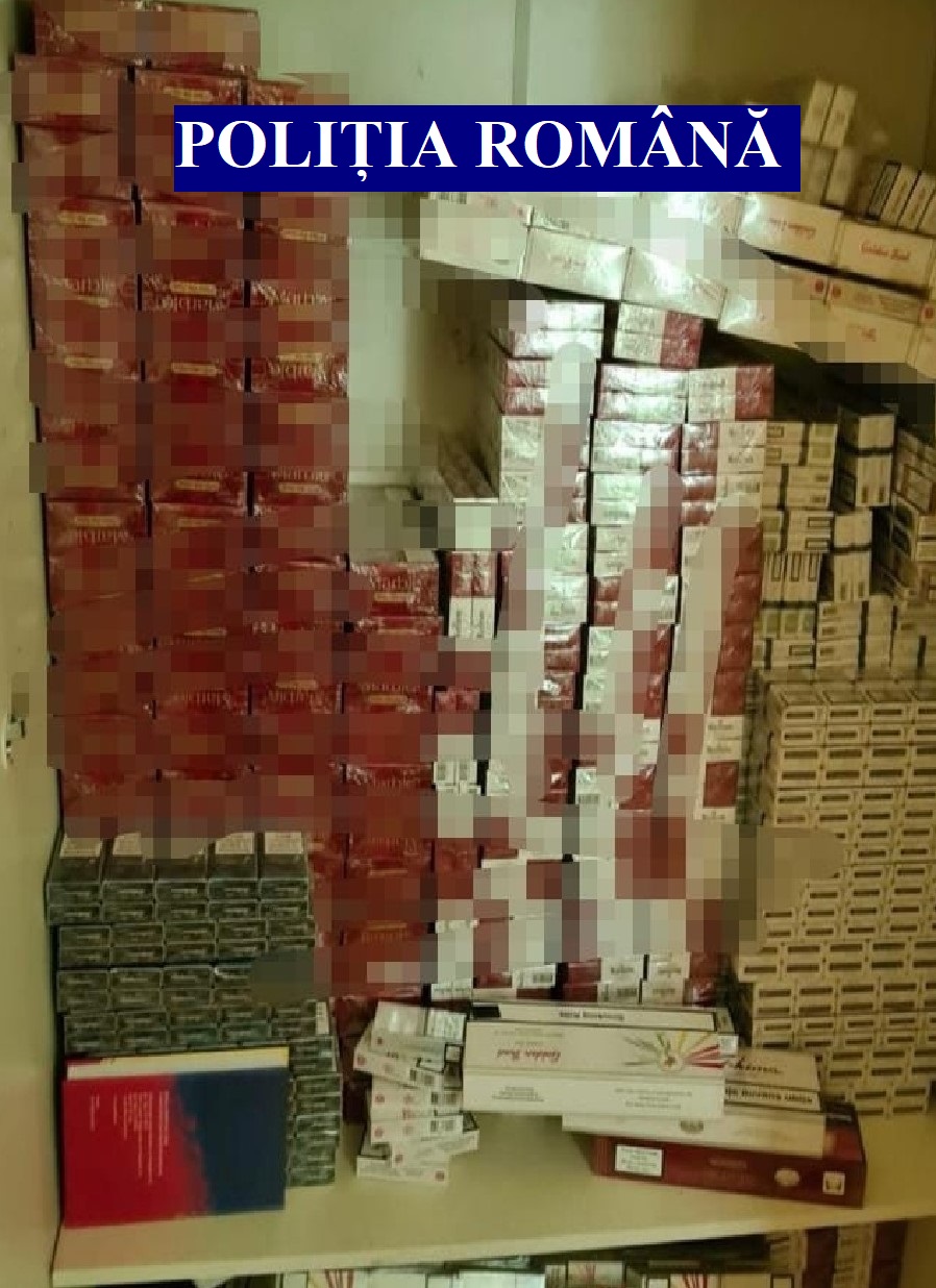 „În urma perchezițiilor, au fost descoperite și ridicate 34.769 de pachete de țigarete netimbrate, 91.283 de lei și 35 de litri de alcool.