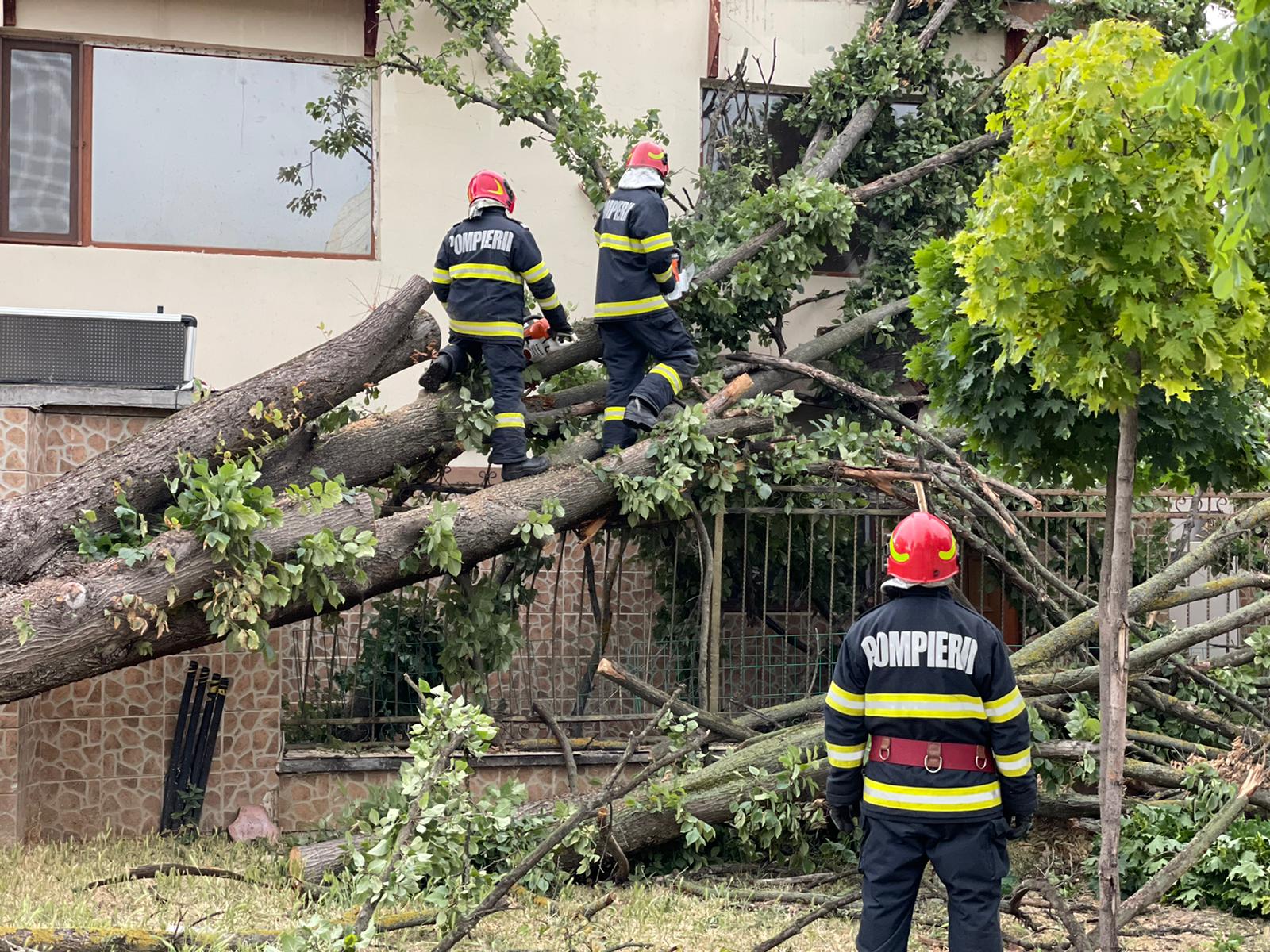 Cealaltă intervenție a pompierilor a avut loc pe b-dul General I. Dragalina. Acolo, o tablă a fost smulsă de vânt, de pe un acoperiș. Au intervenit doi subofițeri cu o autoscară B42, din partea Detașamentului 2 Timișoara.