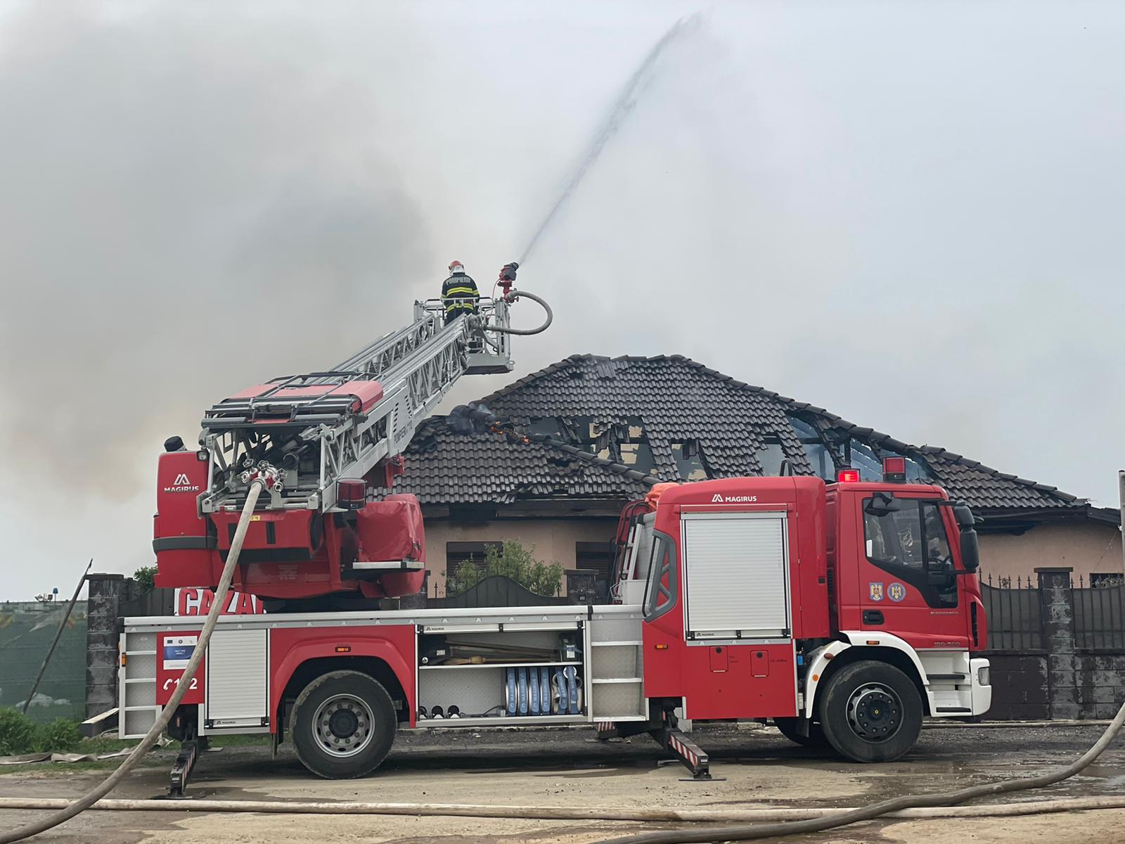 „La sosirea echipajelor la locul intervenției, incendiul se manifesta cu ardere generalizată la acoperișul și podul casei, pe o suprafață de aproximativ 120 mp, și la acoperișul unei anexe, cu pericol de propagare și la un garaj.