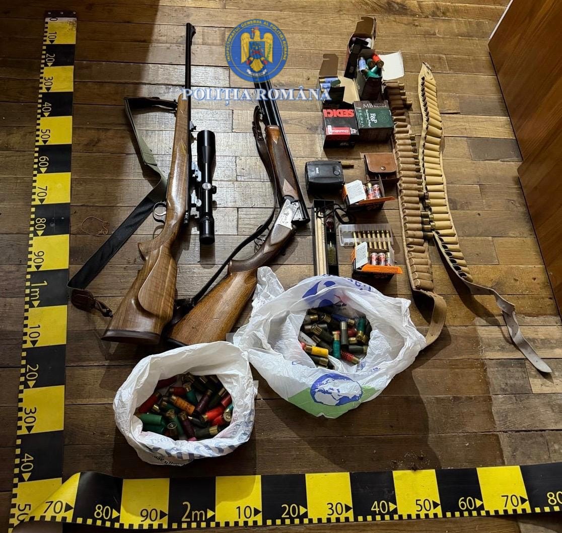 În urma percheziției, au fost ridicate o pușcă de vânătoare cu glonț, o pușcă de vânătoare cu alice, 255 de bucăți de muniție letală de calibre diferite și o armă tip airsoft.