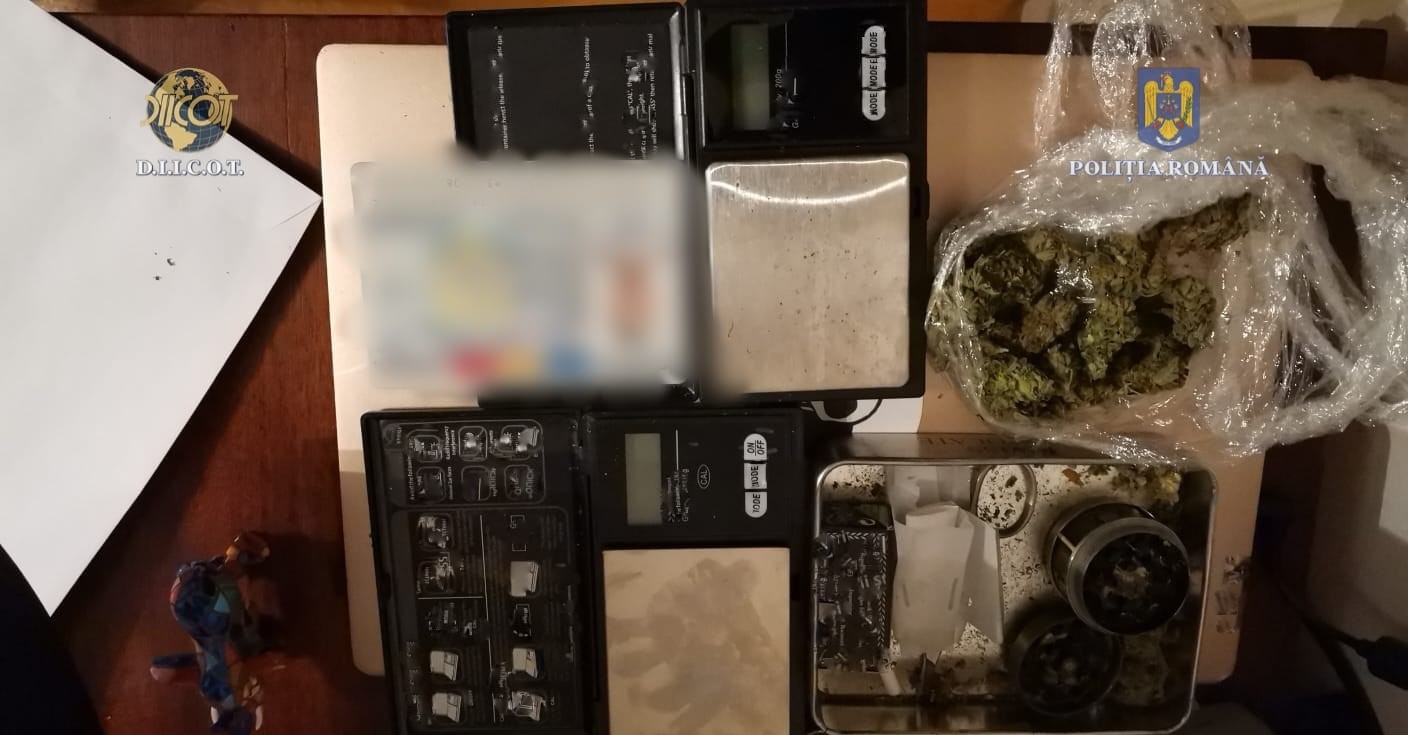 „În urma perchezițiilor domiciliare, au fost descoperite diverse cantități de droguri, fiind ridicate peste 140 de grame de cannabis, 100 de grame de hașiș, un flacon din plastic cu lichid susceptibil a conține substanțe care produc efecte psihoactive, 6 grindere, 3 cântare și 6 telefoane mobile.
