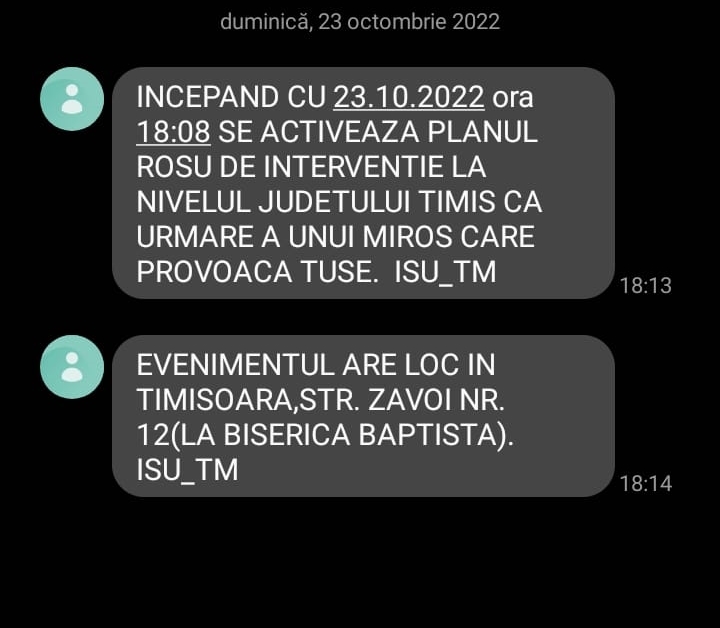 Mirosul a fost semnalat prin apel 112, duminică seară în jurul orei 18, la biserica Baptistă de pe strada Zăvoi din cartierul Fabric din Timișoara.