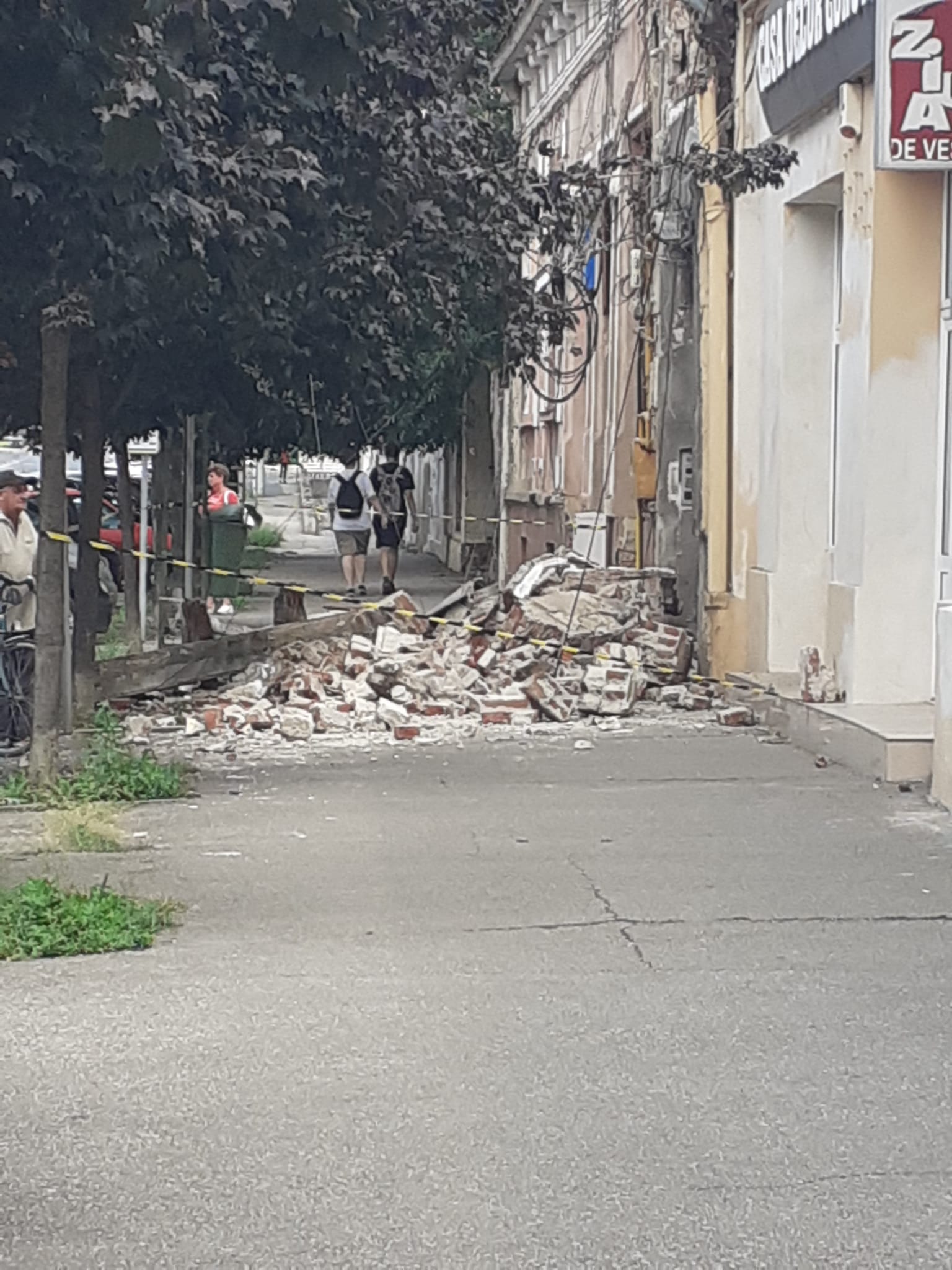 Incidentul s-a petrecut miercuri dimineață, pe bulevardul Dragalina din Timișoara. Polițiștii locali au fost sesizați că de pe o clădire pică tencuială, iar în momentul în care s-au deplasat la fața locului au realizat că zidul din partea superioară a clădirii cu mai multe apartamente s-a prăbușit pe trotuar.