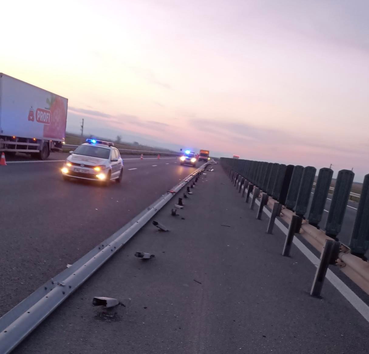 „În jurul orei 4, pe autostrada #A1, km 470, în apropiere de Șanovița (TM), pe sensul de mers spre Nădlac, un autotren a lovit parapetul median. Nu sunt victime. La această oră, se circulă doar pe banda de urgență. Se estimează reluarea circulației normale în jurul orei 8”, au transmis reprezentanții DRDP după producerea accidentului.