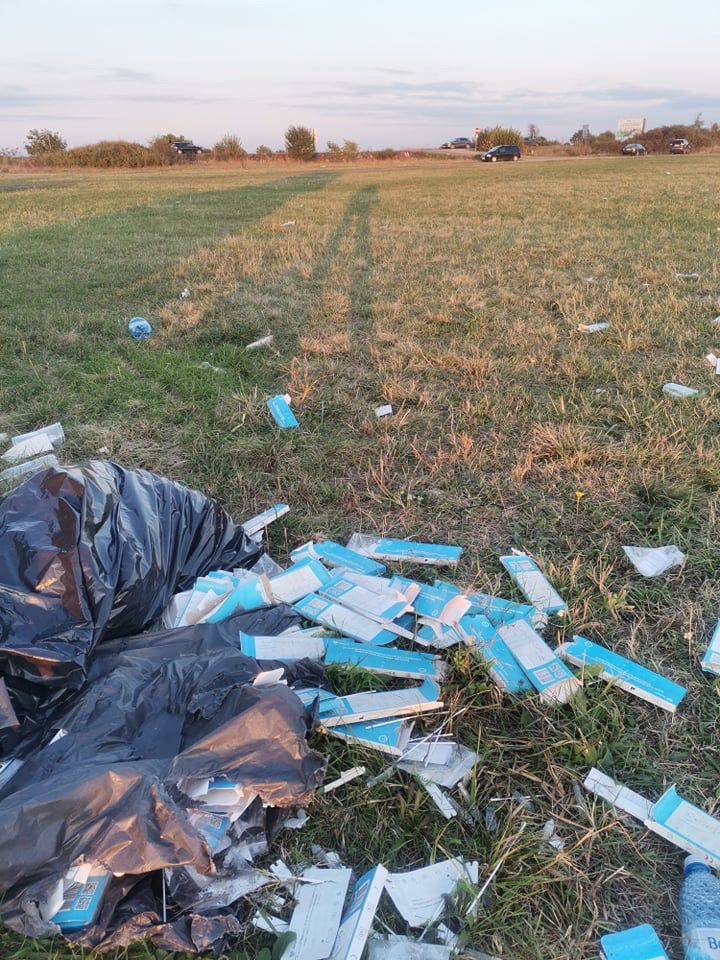 Cazul ne-a fost semnalat de unul dintre cititorii Tion care, aflat în trecere prin zonă, a fotografiat deșeurile. În imagini pot fi observați mai mulți saci de gunoi, unii dintre ei rupți, iar în jurul lor teste Covid.