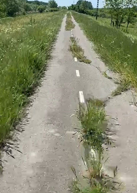 Între timp însă, traseul se degradează de la o zi la alta. Iarba nu îi mai deranjează pe bicicliști doar de pe margine, ci a crescut sănătos chiar pe mijlocul asfaltului, între cele două sensuri de mers.