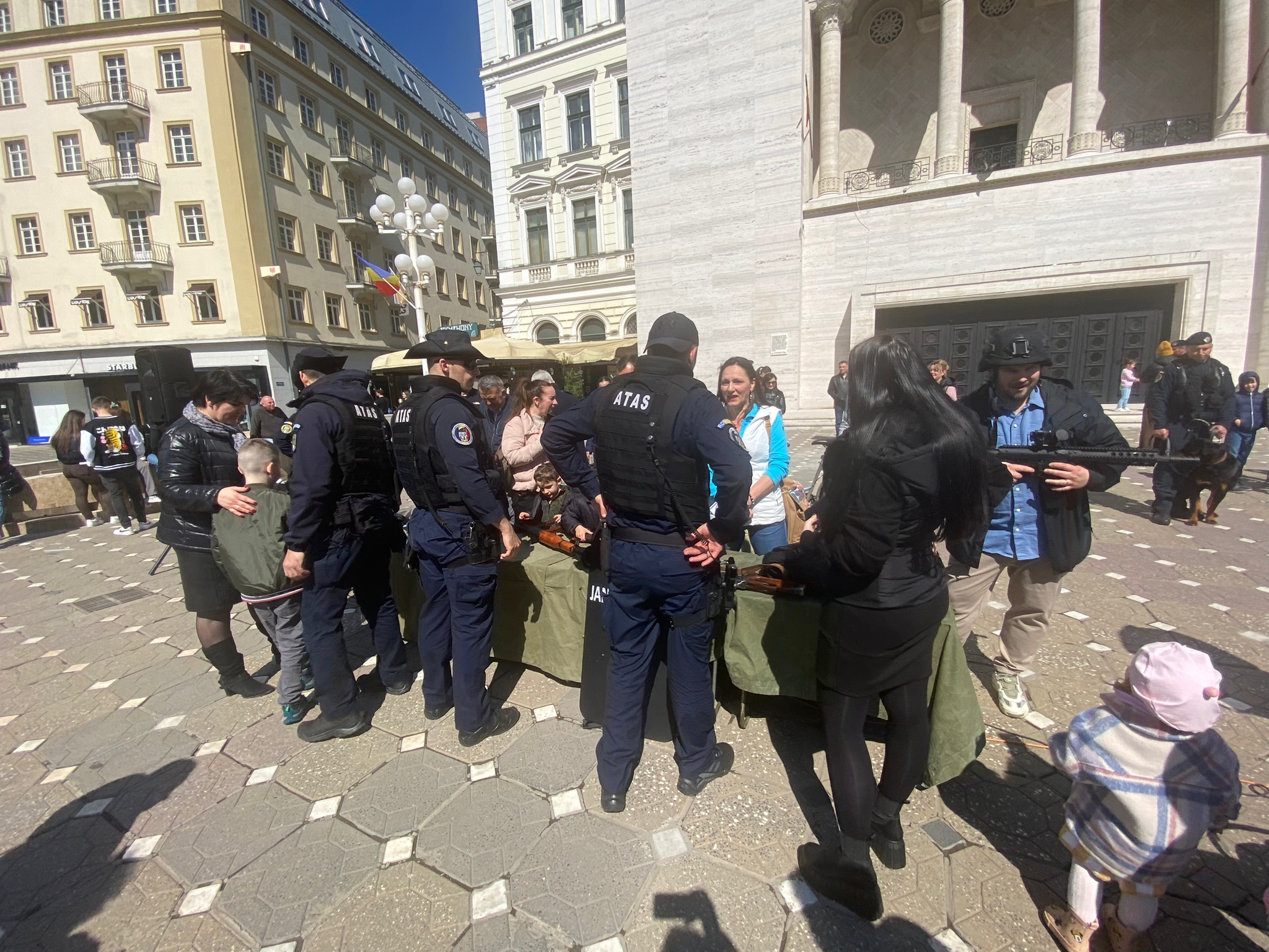 Duminică, în Piața Victoriei, în fața Operei Române, au avut loc activități pentru toate vârstele. Cei mai atrași de tehnica și dotările Jandarmeriei au fost copiii.