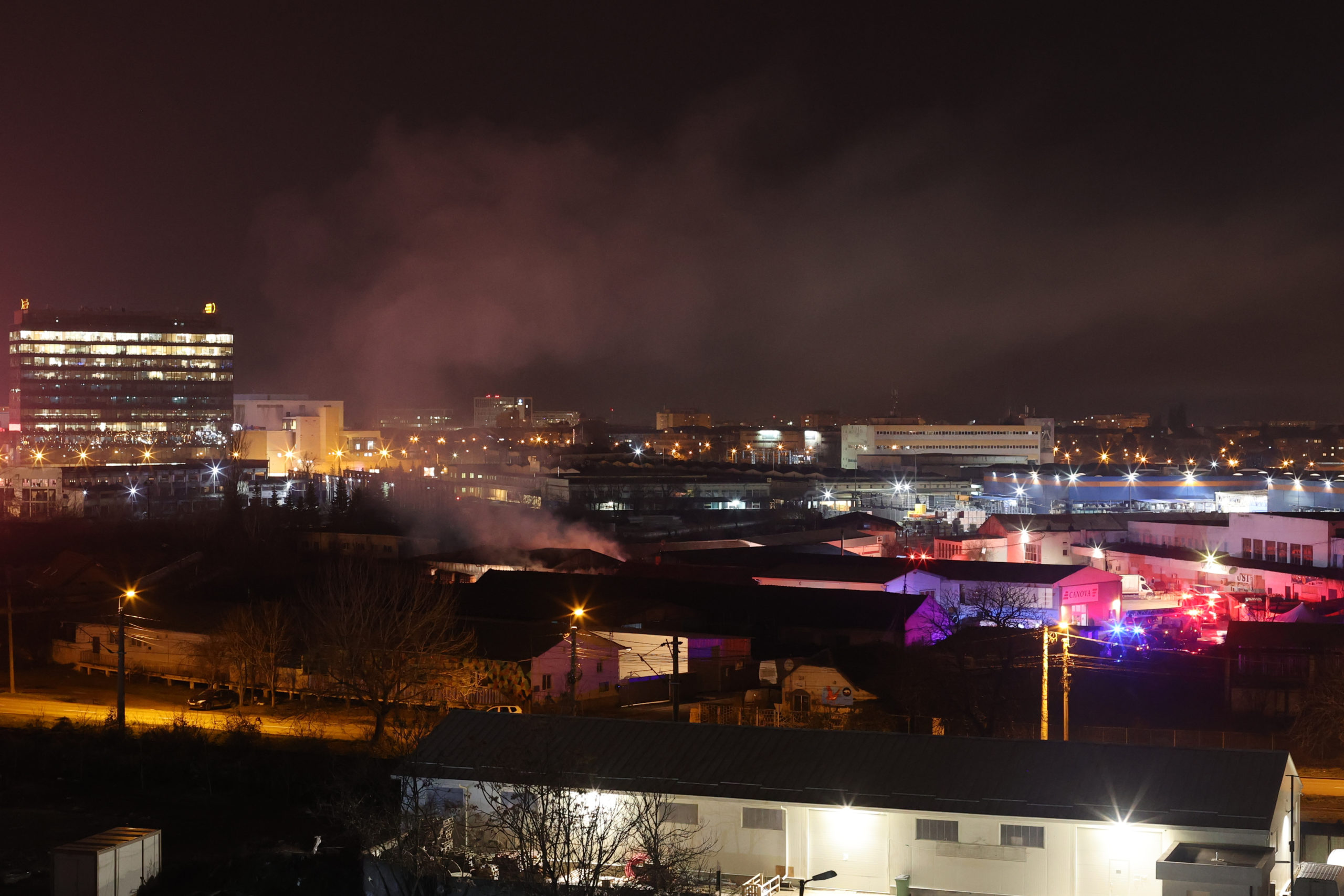 Incendiu la un atelier de mobila intr-o hala in care sunt depozitate materiale lemnoase, vopseluri si lacuri, cu degajari mari de fum, Timisoara, vineri 5 februarie 2021 SEBASTIAN TATARU / MEDIAFAXOFOTO