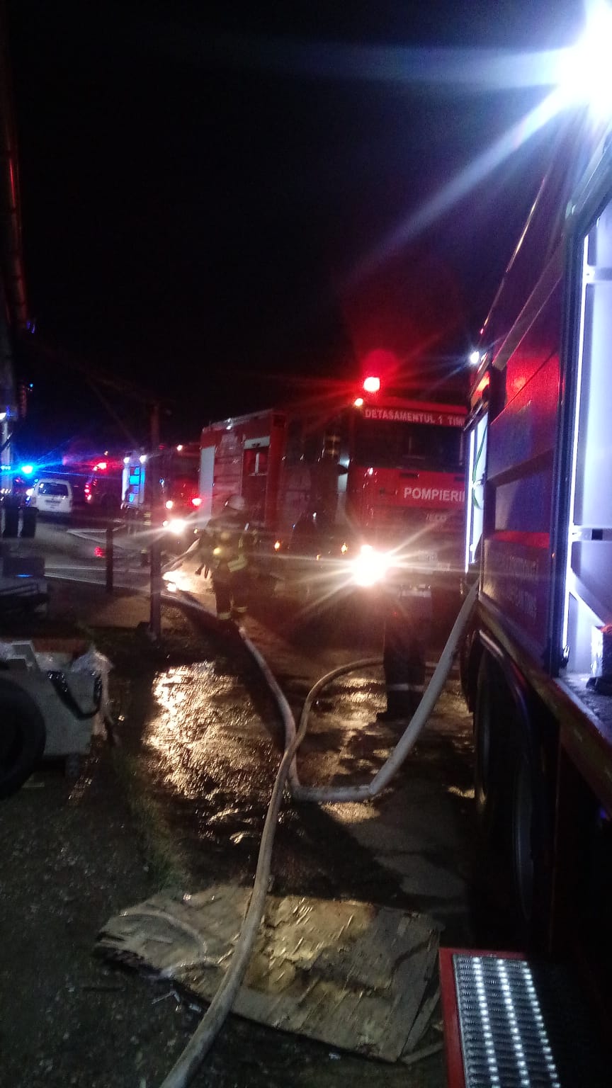 Incendiu se manifestă cu ardere generalizată la o hală în care sunt depozitate materiale din lemn, vopseluri și lacuri. Sunt degajări mari de fum. Incendiul este localizat, iar pompierii intervin pentru a-l stinge. La fața locului s-a mai deplasat o autospecială de stingere și o autoscară de lucru la înălțime.
