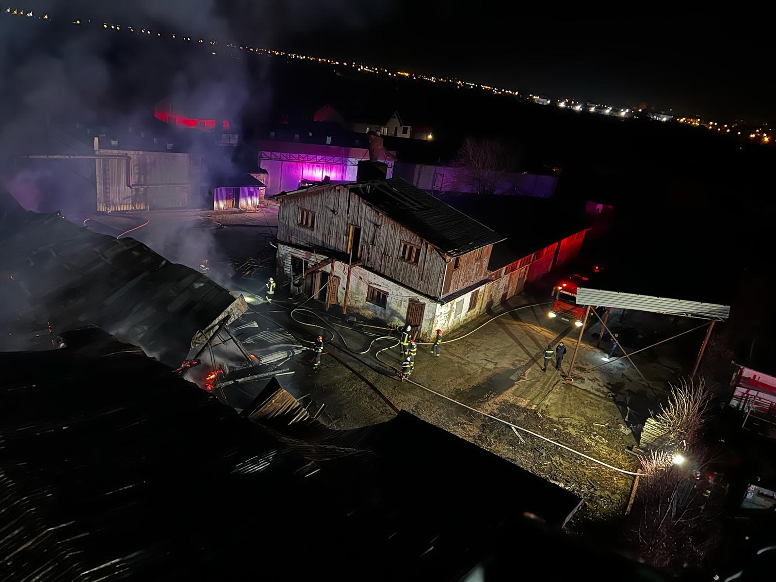 Din primele informații, incendiul se manifestă generalizat, pe o suprafață de aproximativ 1000 mp.