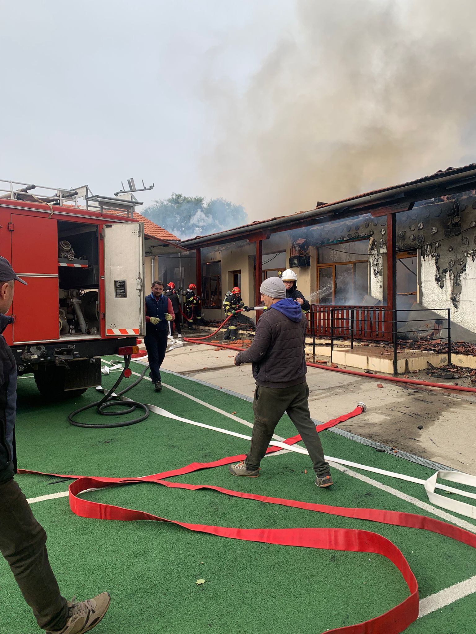 „Pompierii au ajuns la fața locului în cel mult trei minute, însă incendiul s-a extins rapid, cuprinzând întregul acoperiș. În timpul intervenției, tavanele s-au prăbușit, fiind compromise dotările școlii realizate recent prin Programul Național de Redresare și Reziliență (PNRR). Flăcările s-au extins pe o suprafață de aproximativ 80–100 de metri, afectând și proprietăți private din vecinătate, unde au fost distruse o locuință și mai mulți baloți de paie aparținând unui fermier din zonă”, transmite IȘJ Timiș.