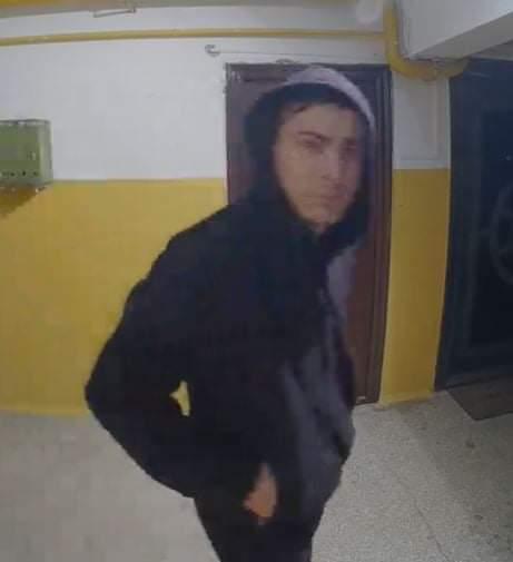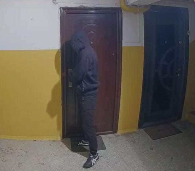 Individul, un tânăr, a fost surprins de camerele de supraveghere montate într-un bloc de apartamente pe strada Musicescu. Nu se știe momentan cum a putut intra în scara blocului, în jurul orei 4.