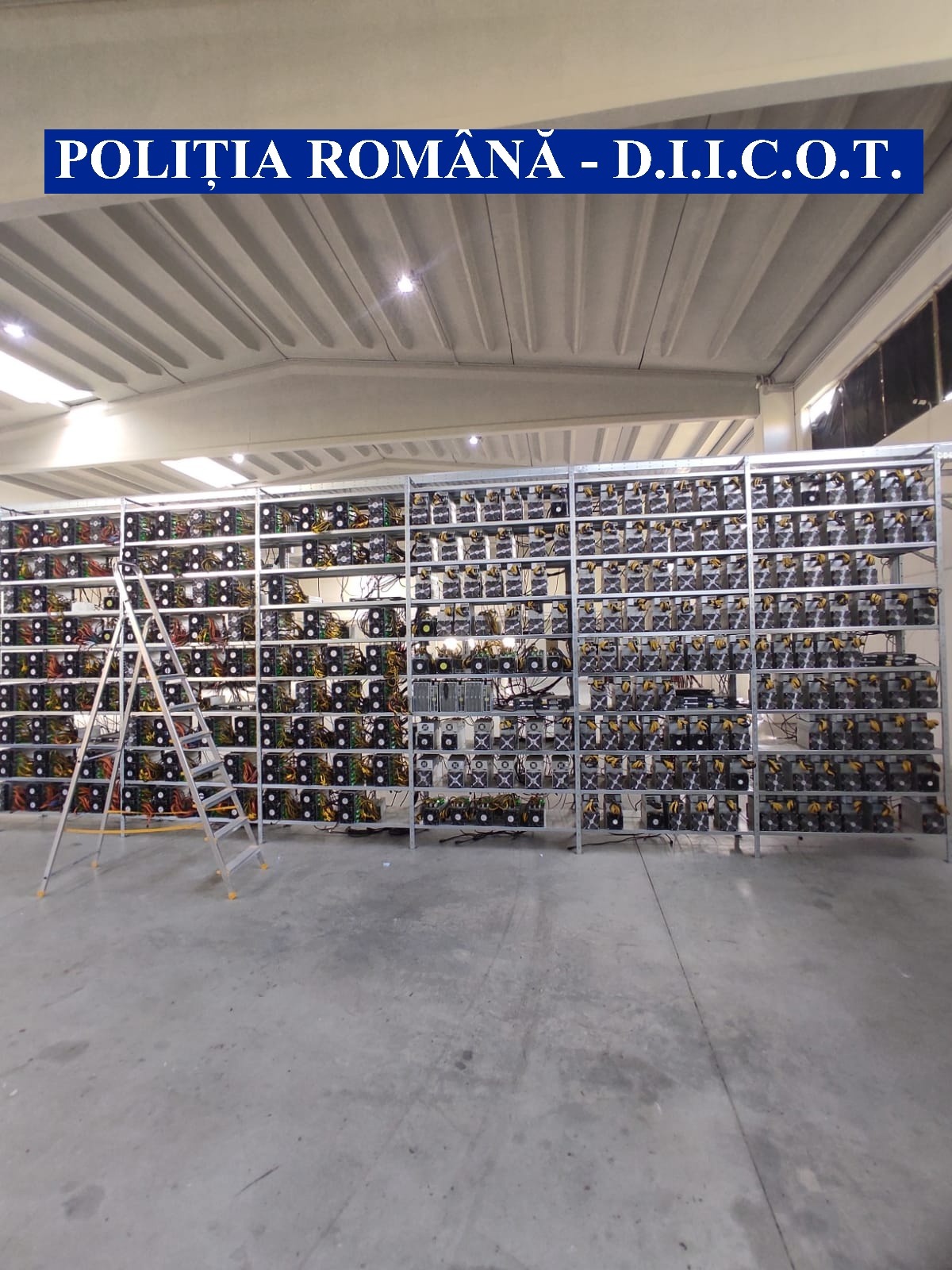 Ferma formată din 370 de unități de minat, toate accesoriile acestora, dar și 62 de unități PC a fost lăsată în custodia proprietarului halei din Arad.