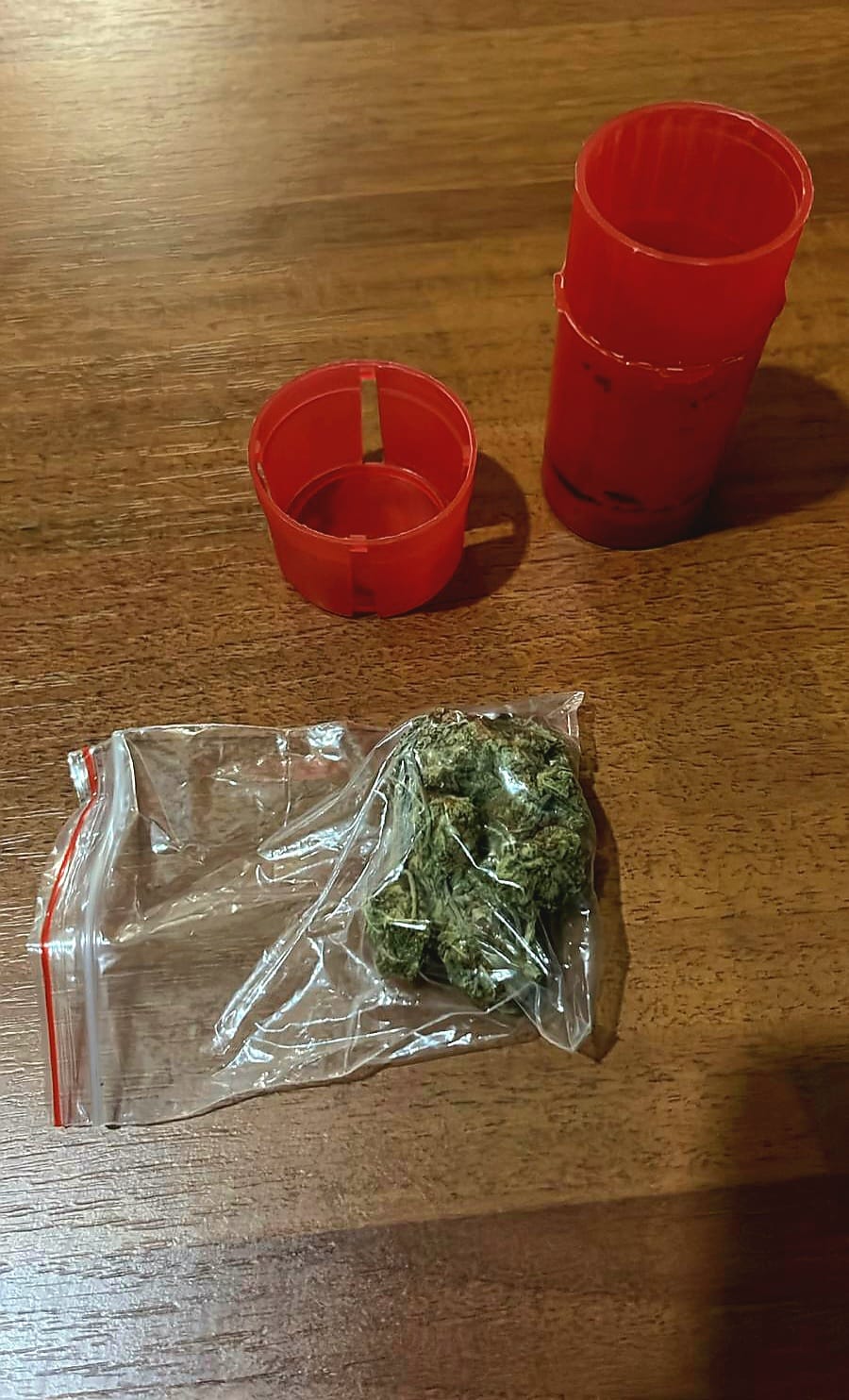 Tânărul a fost legitimat, iar în urma controlului corporal, asupra lui a fost găsit un plic ce conținea muguri vegetali de culoare verde-oliv, cu un miros înțepător, posibil marijuana.