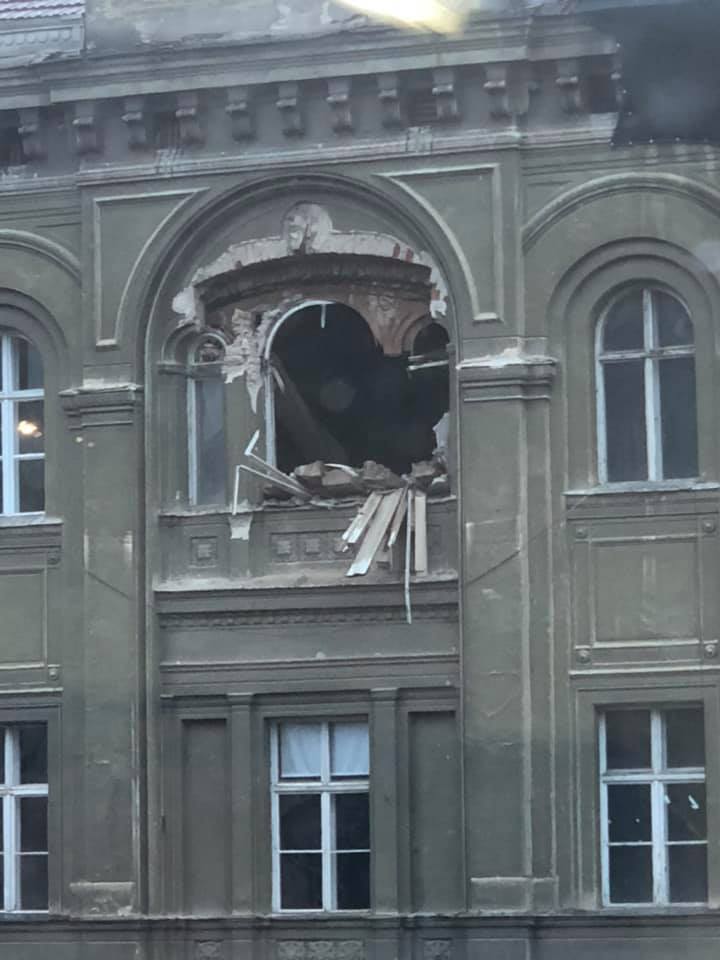 Cărămizile și molozul s-au prăbușit pe trotuar și doar norocul a făcut ca nimeni să nu fie rănit.