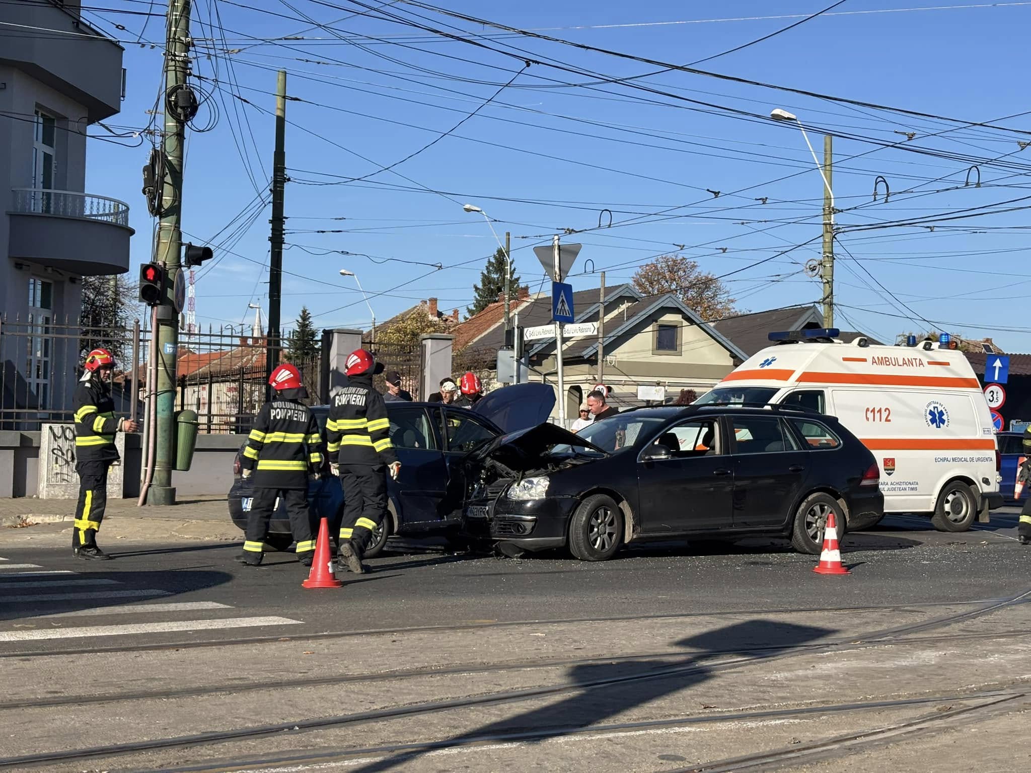Trei persoane rănite, printre care doi copii, după ce două mașini s-au ciocnit pe Calea Torontalului