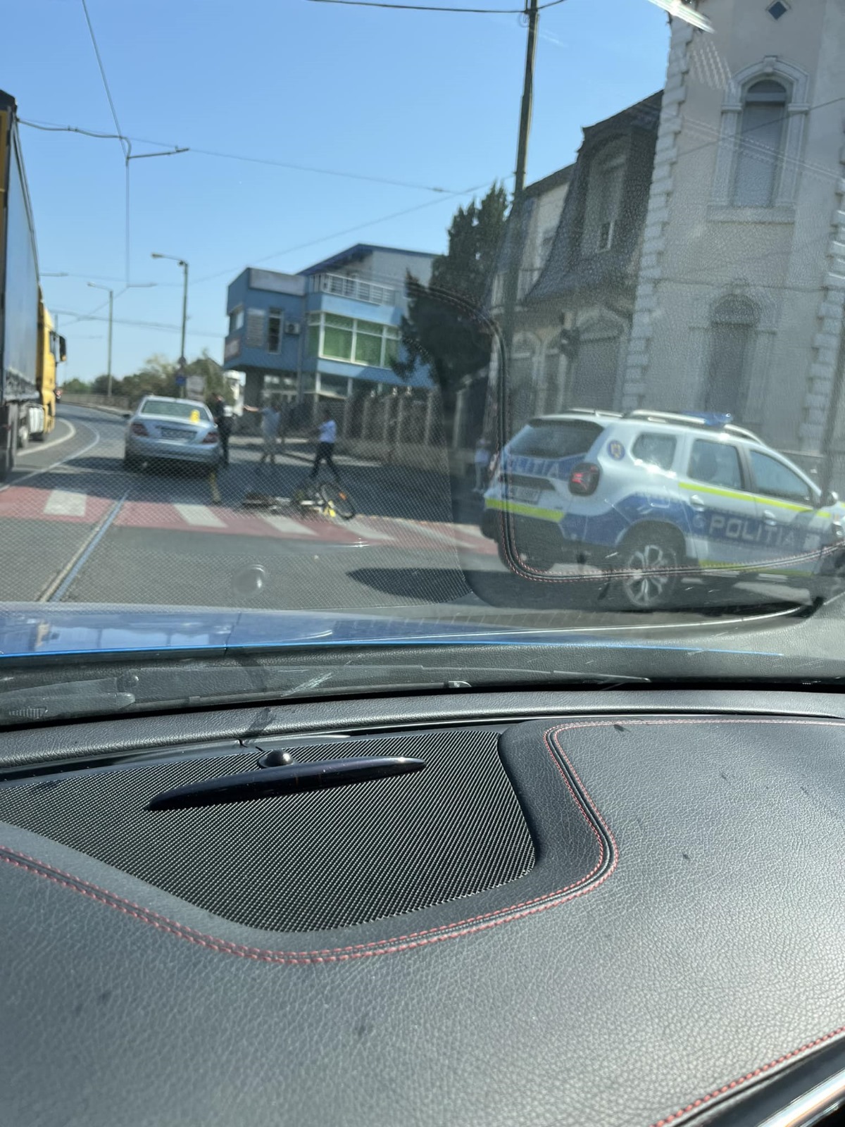 Un șofer și pasagera sa au ajuns la spital după ce mașina în care se aflau a ieșit de pe drum și a lovit un stâlp de semafor pe Calea Martirilor.