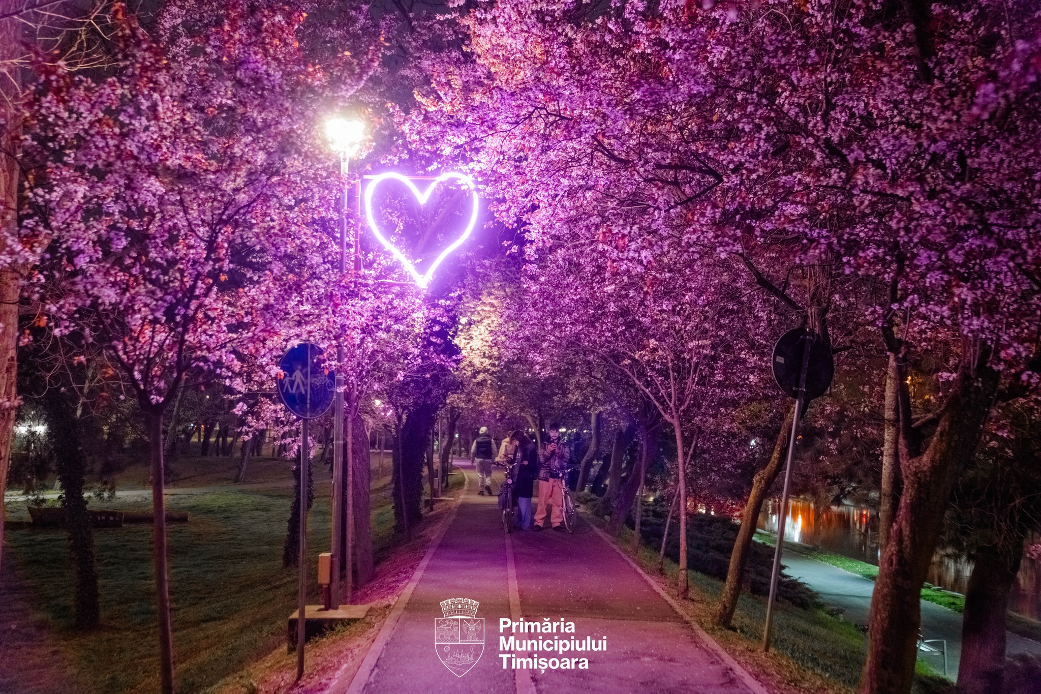 Cei care fac o plimbare printre pomii înfloriți roz care formează „Tunelul iubirii” se pot bucura de acum, pe timp de seară, de un iluminat specific.