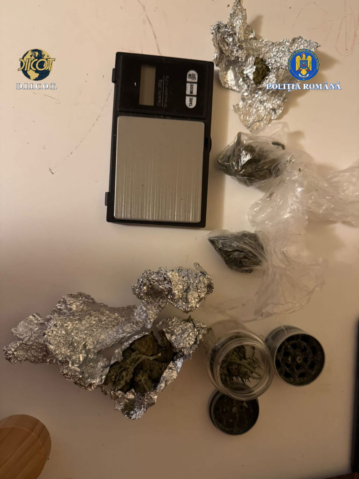 Polițiștii DIICOT Timișoara au efectuat miercuri două percheziții în municipiul Arad, într-un dosar privind trafic de droguri de risc și mare risc și operațiuni ilegale cu substanțe psihoactive, care a vizat doi bărbați suspectați că ar fi comercializat de canabis, 2MMC și 4BMC.