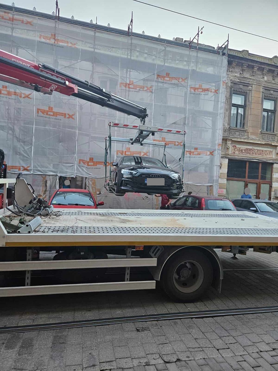 Polițiștii locali sosiți la fața locului au solicitat intervenția angajaților de la Timpark, care au ridicat mașina.