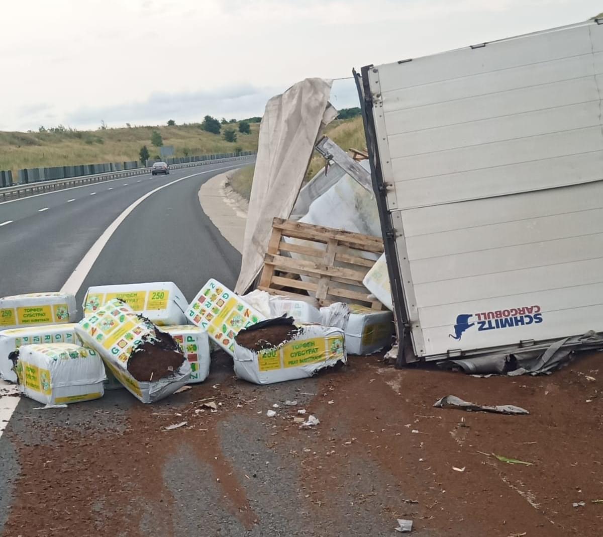 Accidentul s-a produs joi, pe A6, breteaua care face legătura între A1 și centura Lugojului. Bărbatul în vârstă de 54 de ani conducea un tir, iar la un moment dat a pierdut controlul volanului. Autotrenul a părăsit șoseaua și s-a răsturnat în afara părții carosabile.