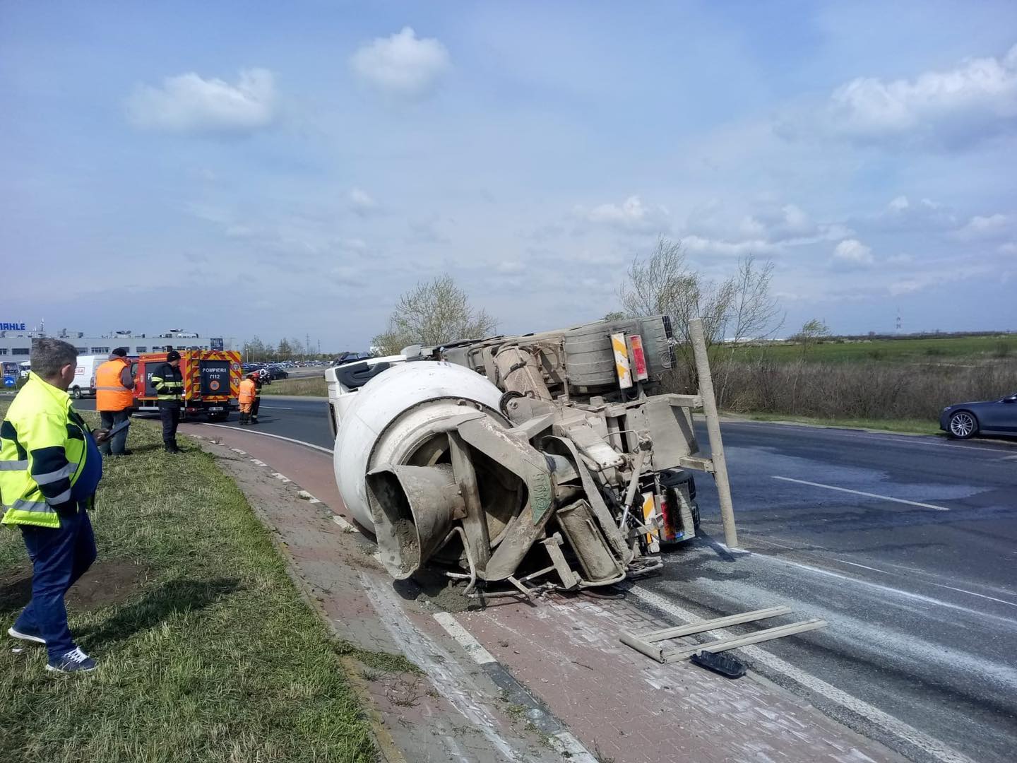 Din fericire, conform IPJ Timiș, nu au fost raportate victime, însă autobetoniera afectează traficul.