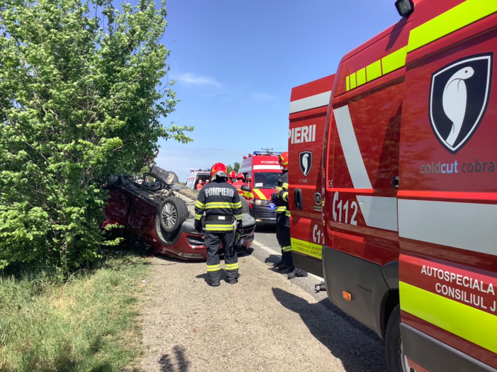UPDATE. Vinovat de producerea accidentului: un tânăr de 23 de ani care a intrat cu viteză prea mare în curbă