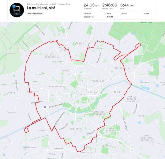 „Sunt unul dintre oamenii din Timișoara căruia îi place să alerge. Nu la nivel profesionist, ci de placere. Astăzi este ziua surorii mele cele mici, și de ziua ei am vrut să fac ceva ce a rămas lipit de mine de când am auzit asta, și anume «să îți alergi vârsta». Și după destul de mult planning, am reușit să fac asta într-un fel destul de original. Și am alergat pe strazile din Timișoara și cam asta a iesit”, ne-a transmis cititorul Tion.