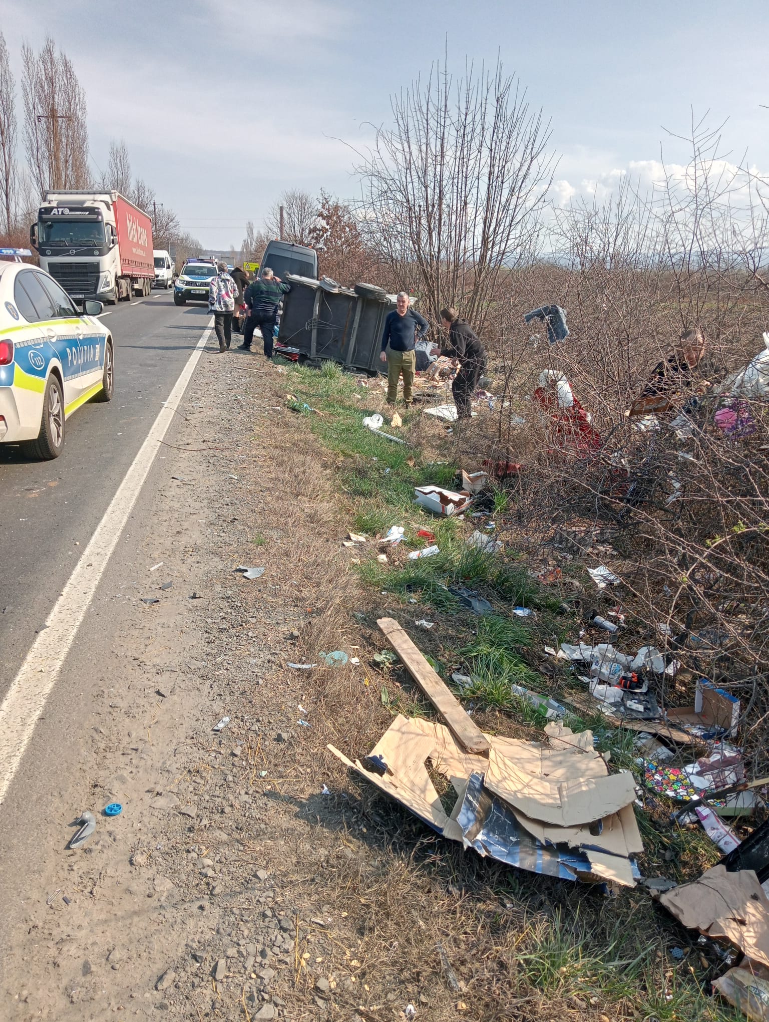 Din primele verificări desfășurate de polițiști la fața locului, accidentul s-a produs în momentul în care un bărbat în vârstă de 42 de ani, care conducea un tir pe DN 68A dinspre Deva spre Făget, a pierdut controlul asupra direcției de deplasare, a intrat în coliziune cu un microbuz, condus de un bărbat în vârstă de 38 de ani, și apoi cu o autoutilitară, condusă de un tânăr în vârstă de 25 de ani.