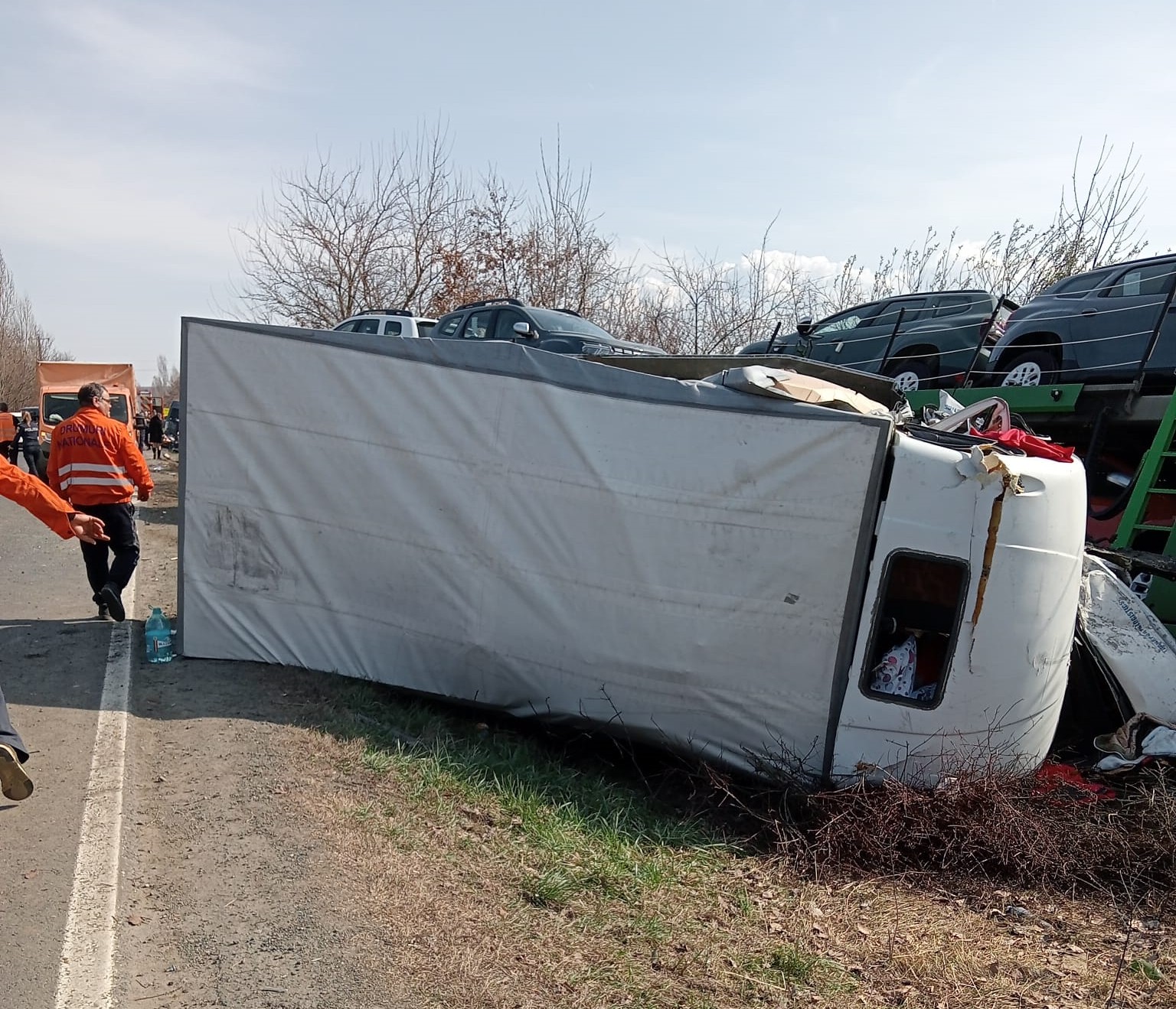 În urma impactului a fost rănit șoferul autoutilitarei și o tânără în vârstă de 20 de ani, pasageră în autovehicul. Aceștia au fost transportați la spital pentru a li se acorda îngrijiri medicale.