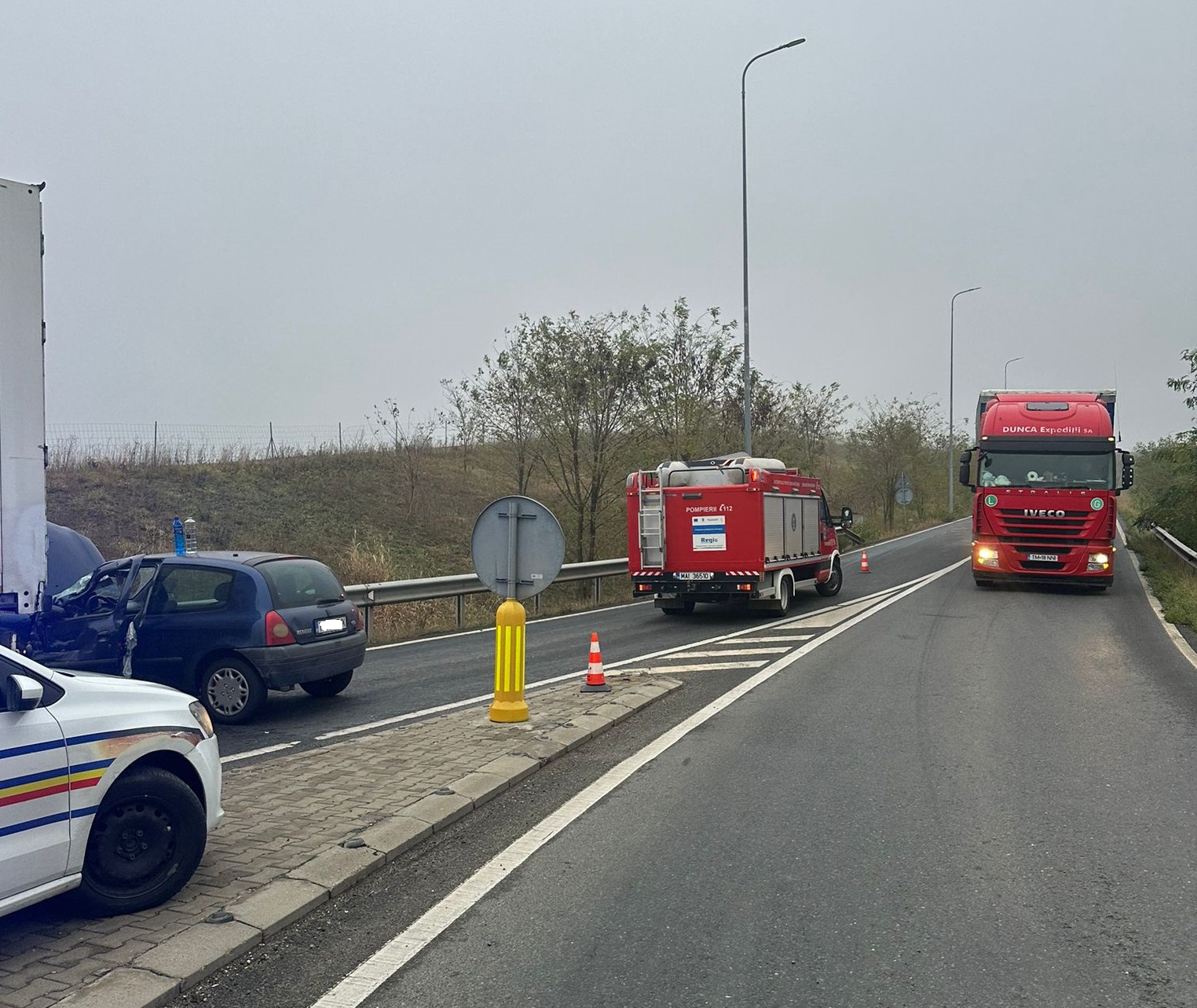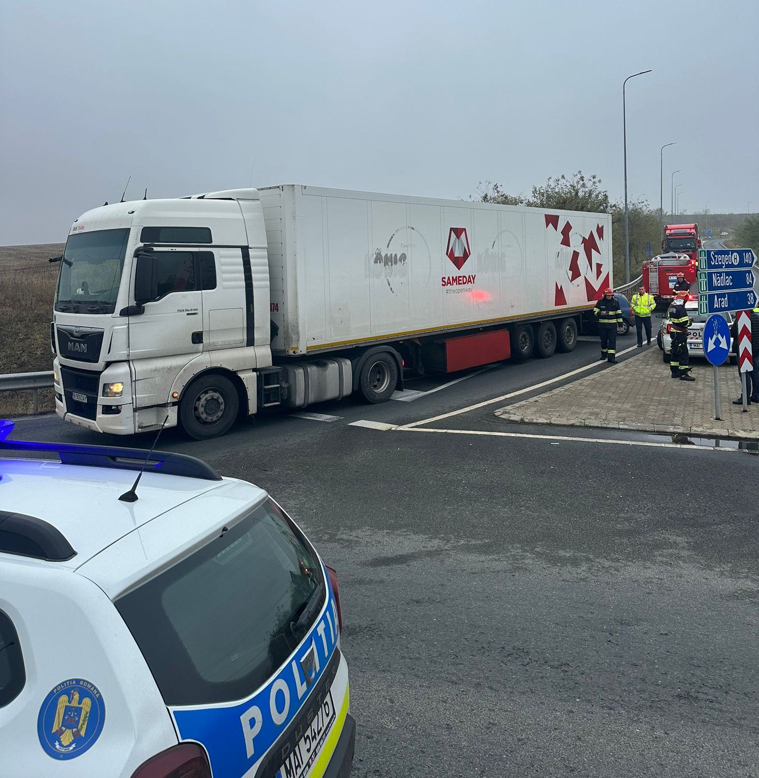 Potrivit informațiilor furnizate de reprezentanții Inspectoratului de Poliție al Județului Timiș, o femeie, în vârstă de 49 de ani, a condus un autoturism pe breteaua de coborâre de pe autostrada A1, înspre Giarmata, iar la un moment dat, a intrat în coliziune cu un ansamblu rutier, condus de către un bărbat, în vârstă de 55 de ani.