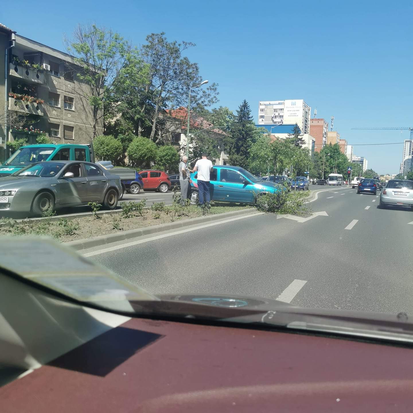 Incidentul a avut loc astăzi după-amiază, pe b-dul Take Ionescu, sensul de mers spre Punctele Cardinale. Un autoturism a ajuns pe spațiul verde și a doborât un copac, după ce a fost lovit din spate de un alt autovehicul, care încerca să schimbe banda.