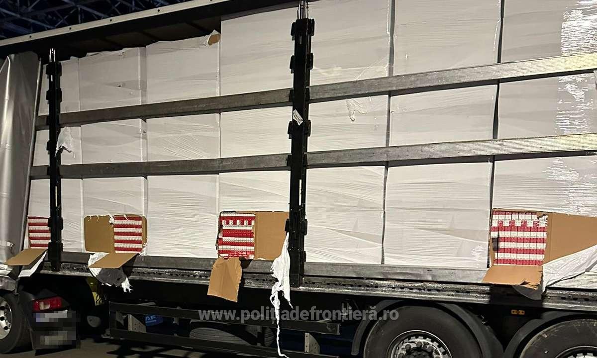 Conform documentelor însoțitoare ale mărfii, autocamionul circula pe ruta Germania – Republica Moldova, fiind încărcat cu hârtie. La control însă, polițiștii de frontieră au descoperit, în compartimentul destinat transportului de marfă, 1.120 de baxuri de țigări, în valoare totală de 7.280.000 de lei, echivalentul a aproape 1,5 milioane de euro.