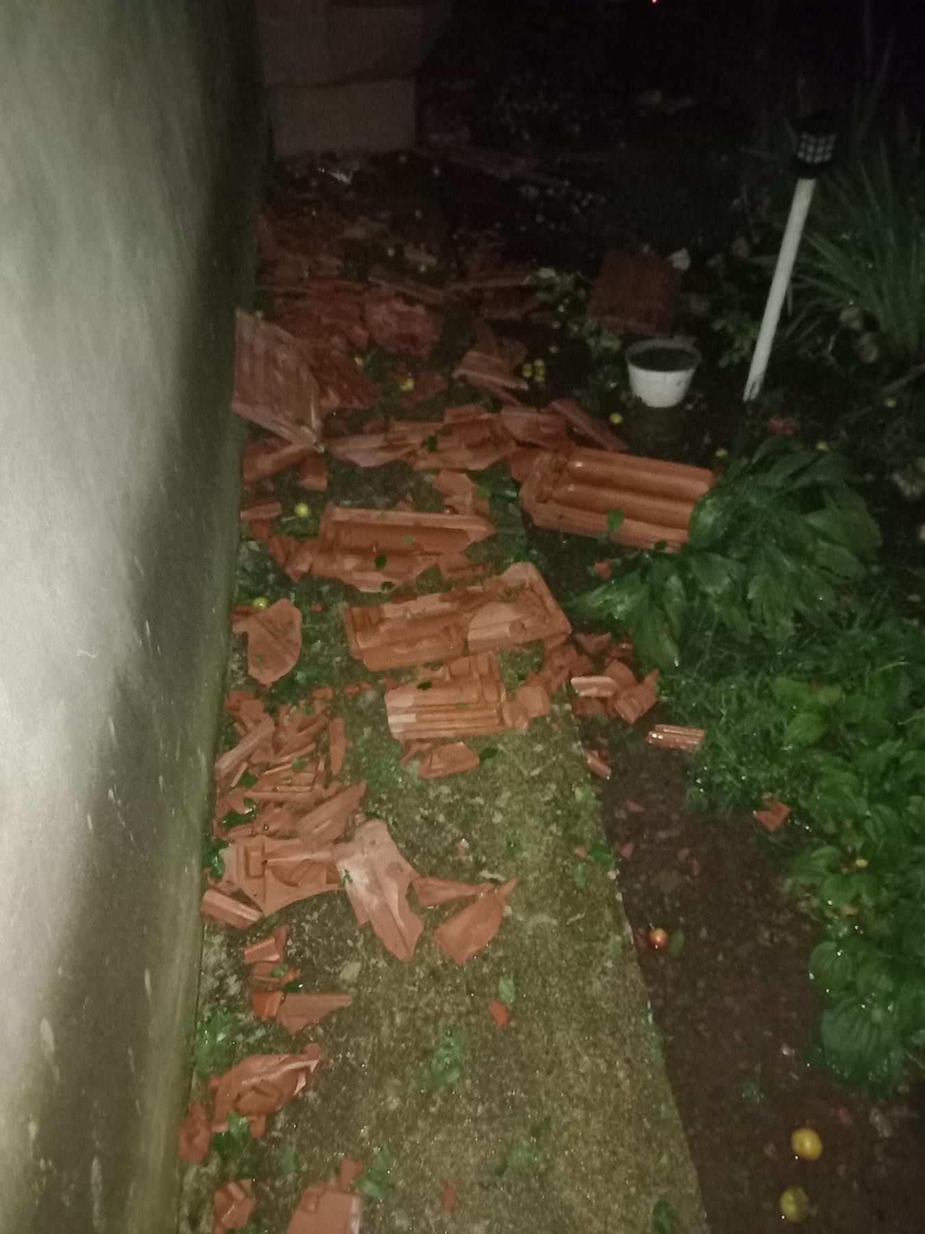Din fericire nu au existat acoperișuri prăbușite sau desprinse de vânt, numai țigle doborâte de pe case.