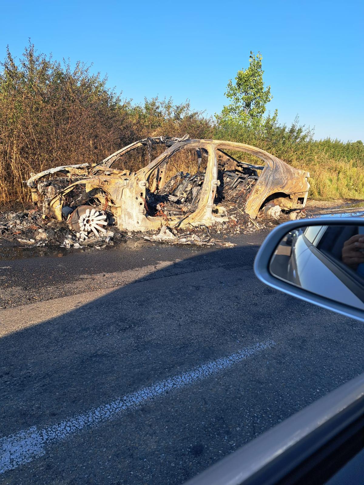 Incendiul s-a produs joi după-masă pe DJ592, în zona podului peste râul Timiș, în apropiere de Albina. Mașina a luat foc în mers, iar șoferul și doi copii au reușit să coboare din ea la timp.