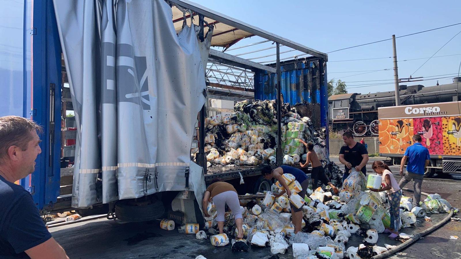 Remorca a luat apoi foc, însă pompierii l-au lichidat în scurt timp. După ce flăcările au fost stinse, mai mulți locuitori din zonă au dat năvală la remorca avariată și au început să adune baxuri cu hârtie igienică și șervețele pentru bucătărie. În ciuda prezenței polițiștilor și pompierilor în zonă. Cu toate acestea, cea mai mare parte din marfă a fost adunată de proprietarii transportului care au încărcat-o în câteva mașini pentru transport.