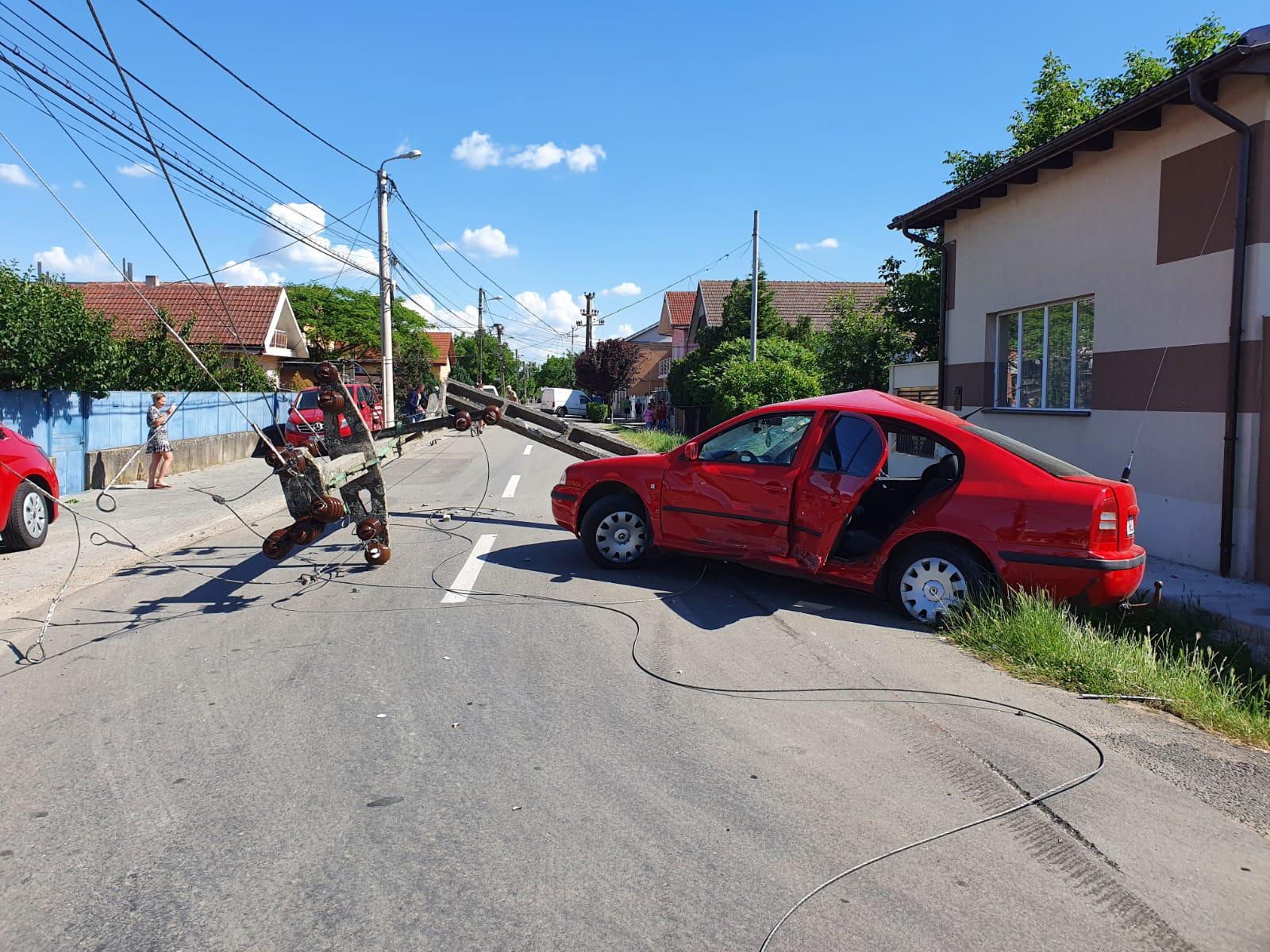 În urma coliziunii, autovehiculul marca Skoda a fost proiectat într-un stâlp de curent, pe care l-a rupt în două. Stâlpul a căzut peste autoturism, iar întreaga zonă a rămas fără electricitate.