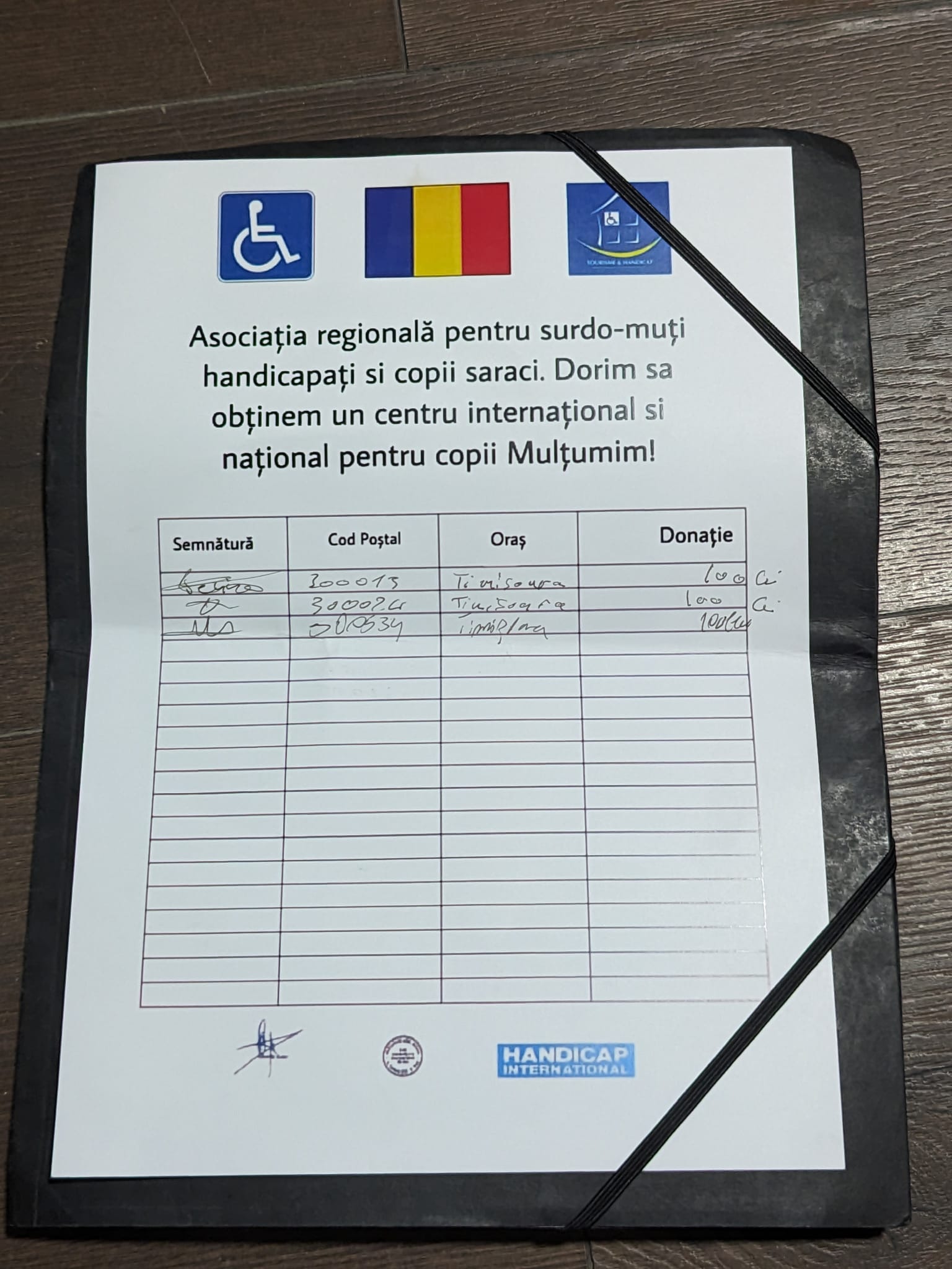 Un cititor Tion ne-a relatat că, încercând să ceară mai multe detalii unor cerșetori care se prefac că acționează în numele unei asociații pentru „surdo-muți handicapați și copii saraci”, aceștia au devenit recalcitranți. Totul s-a întâmplat în centrul Timișoarei.