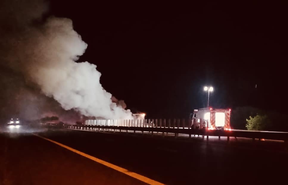„În cursul nopții, la ora 01:54, am fost anunțați prin apel 112 despre producerea unui incendiu la un autotren, pe A1 km 443.