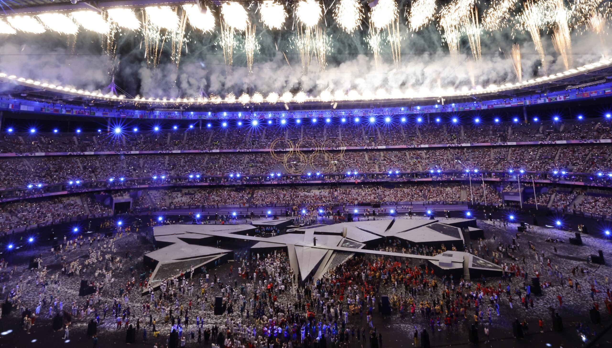 Peste 70.000 de spectatori au fost în tribunele arenei pariziene la încheierea jocurilor, unde au evoluat 270 de artişti şi interpreţi.