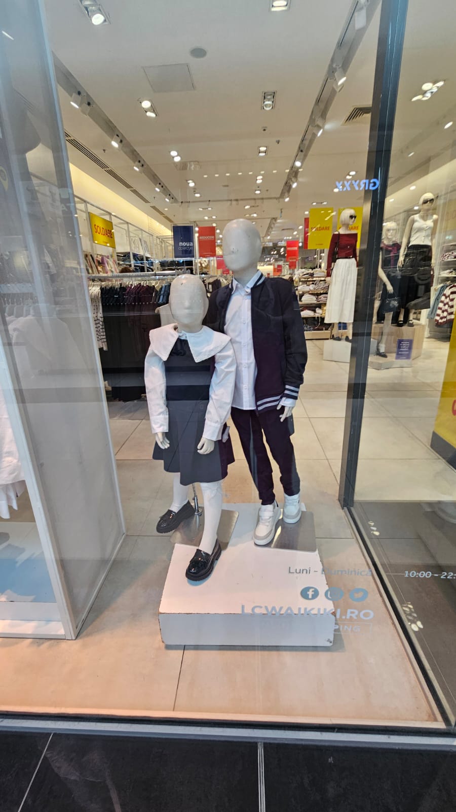 Vitrinele cu oferte back to school pentru cei mici ne prezintă ținute tip uniformă: cămașă albă și pantaloni sau sarafan bleumarin. Totuși, în magazine găsim și haine de zi cu zi, atât cu personaje îndrăgite de cei mici din Cars, Lilo & Stitch, Bluey, Paw Patrol sau Mickey Mouse, cât și variante mai trendy cu animal print și modele care par mini-versiuni ale hainelor pentru adulți, inspirate din moda matură.