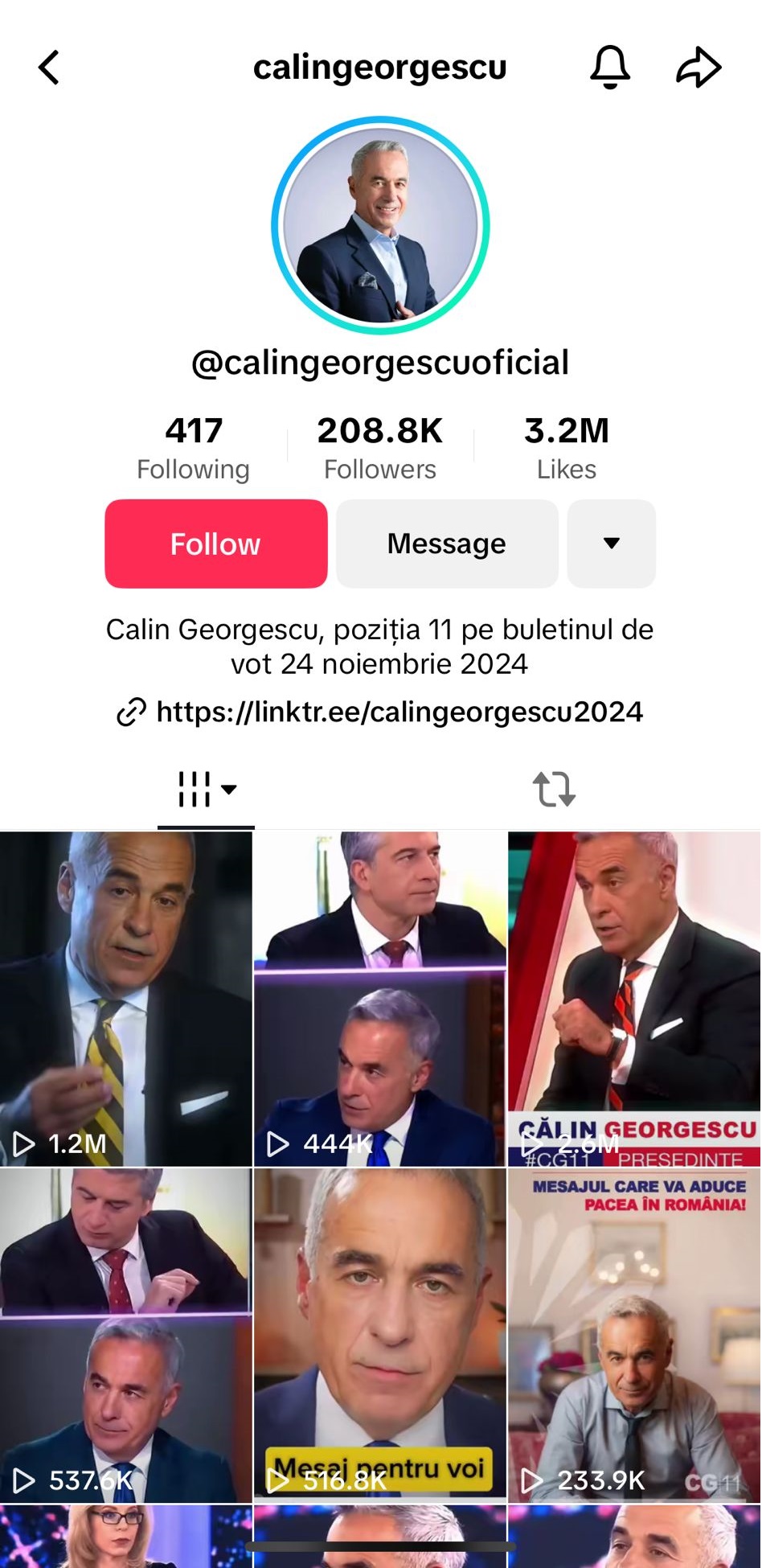 Campania lui Călin Geogescu s-a concentrat în mare parte pe TikTok, acolo unde multe din clipurile sale au devenit virale. În momentul de față, acesta are peste 200.000 de urmăritori și 3,2 milioane de like-uri.